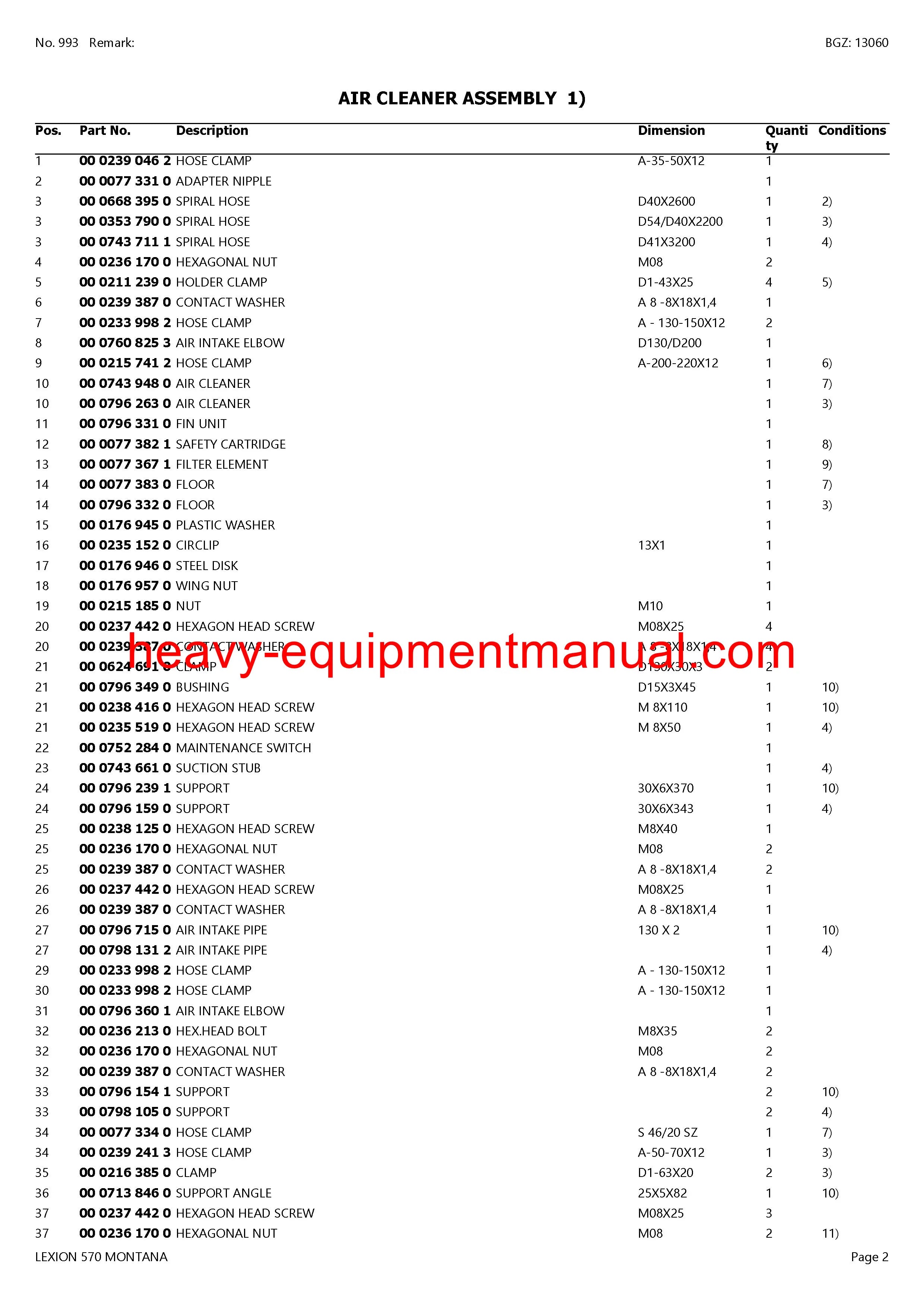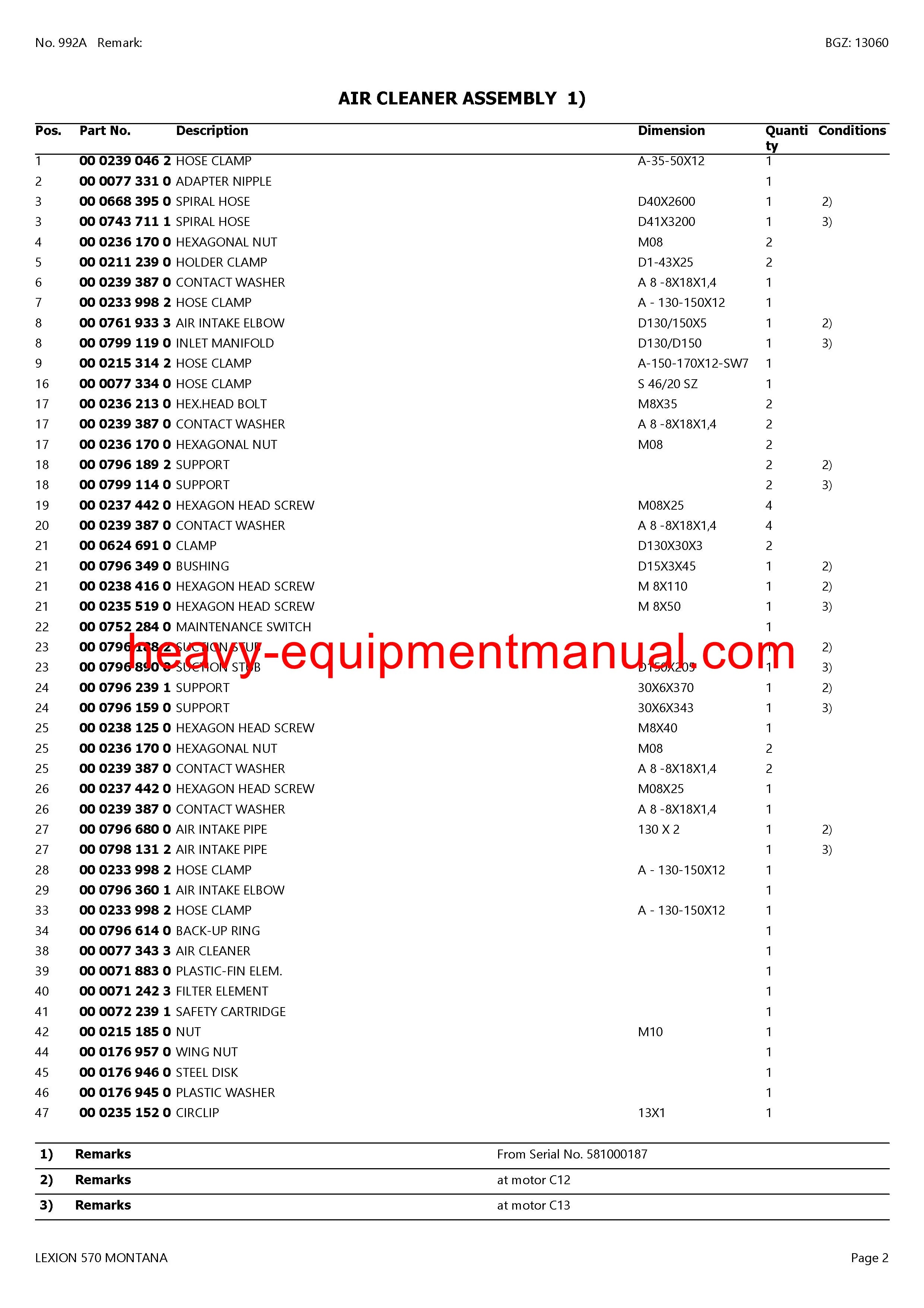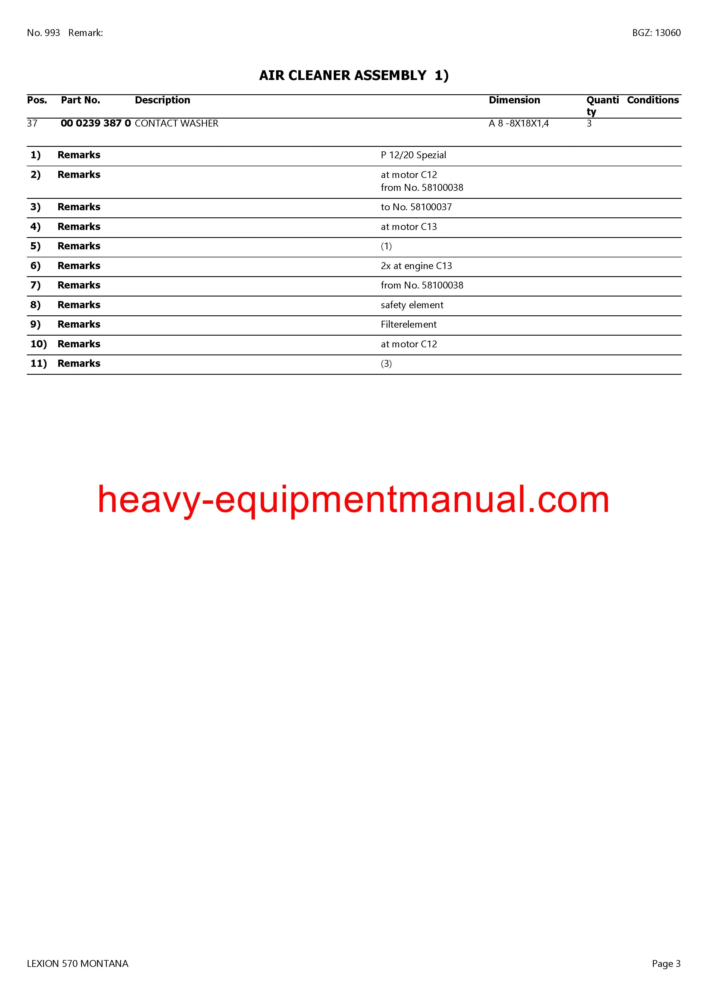 PDF Claas 570 Lexion Montana Combine Parts Manual