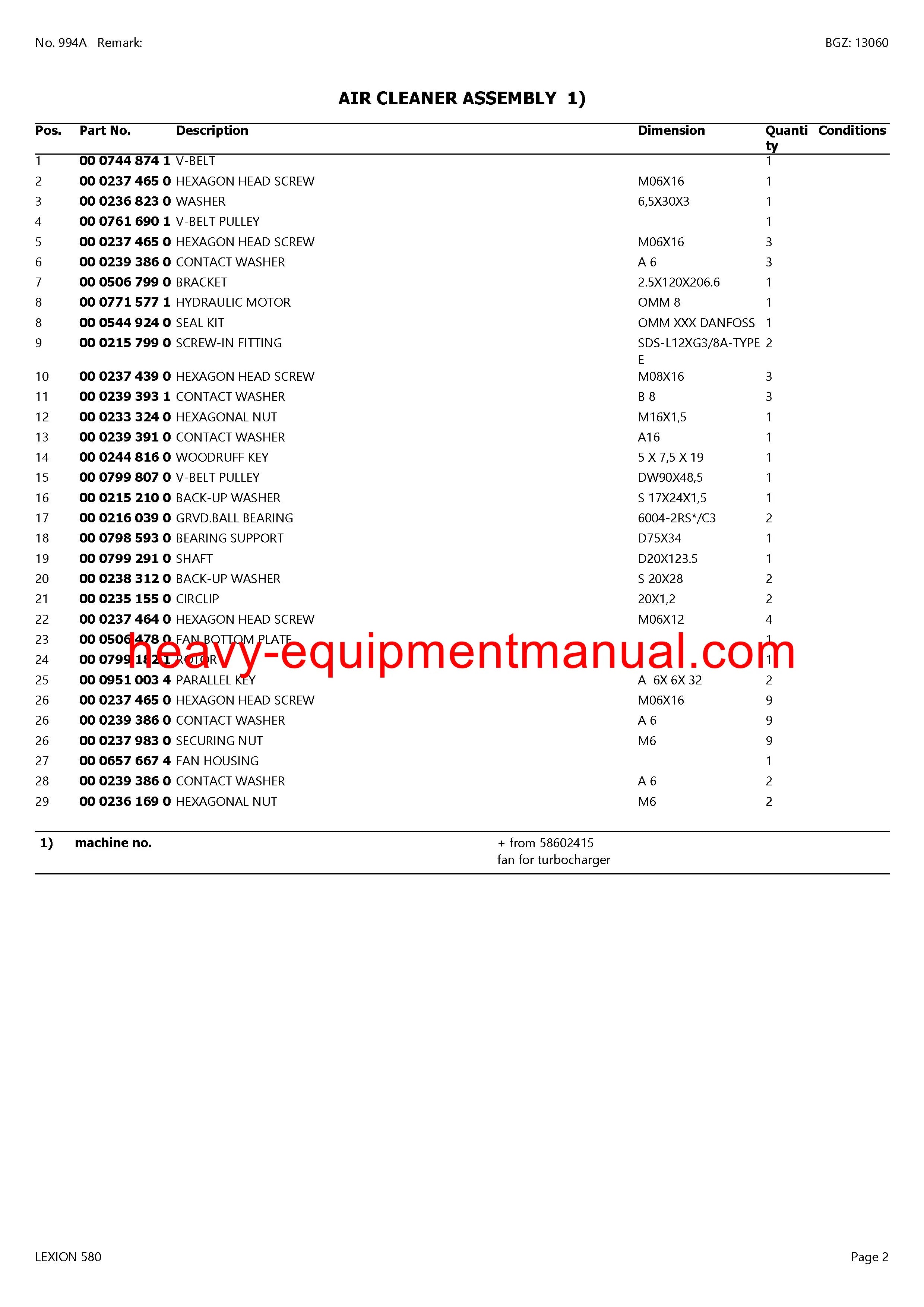 This parts catalog is necessary for determination of original number of the spare part of the producer. Further according to this number it was possible to find, order, buy easily the spare part for your machine.