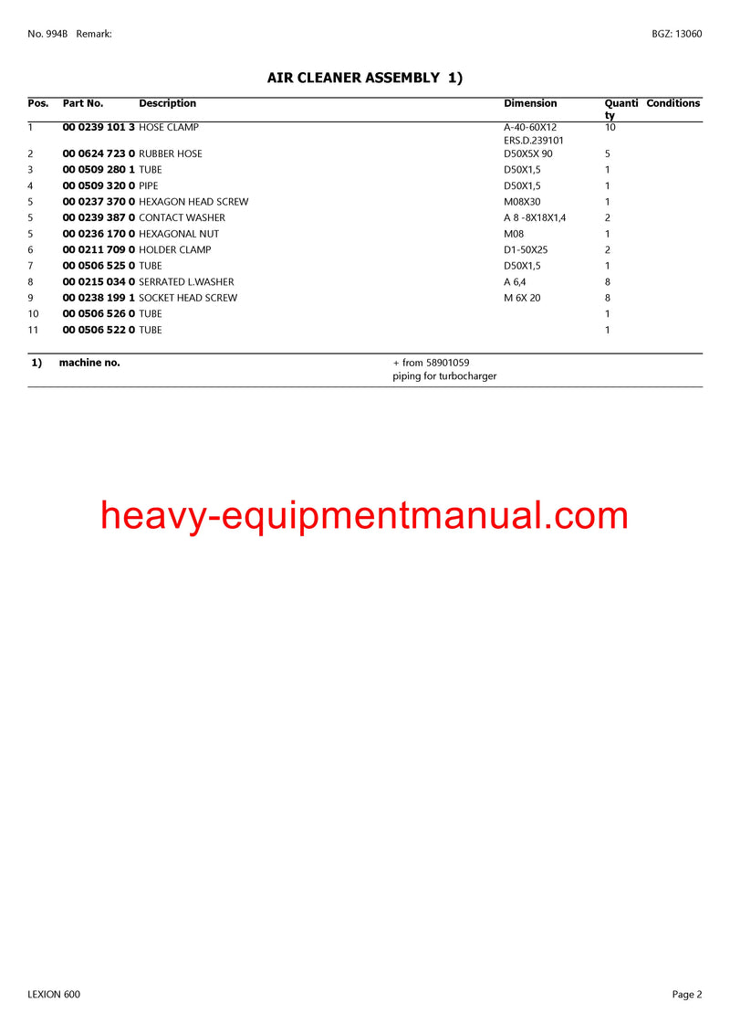 PDF Claas 600 Lexion Montana Combine Parts Manual