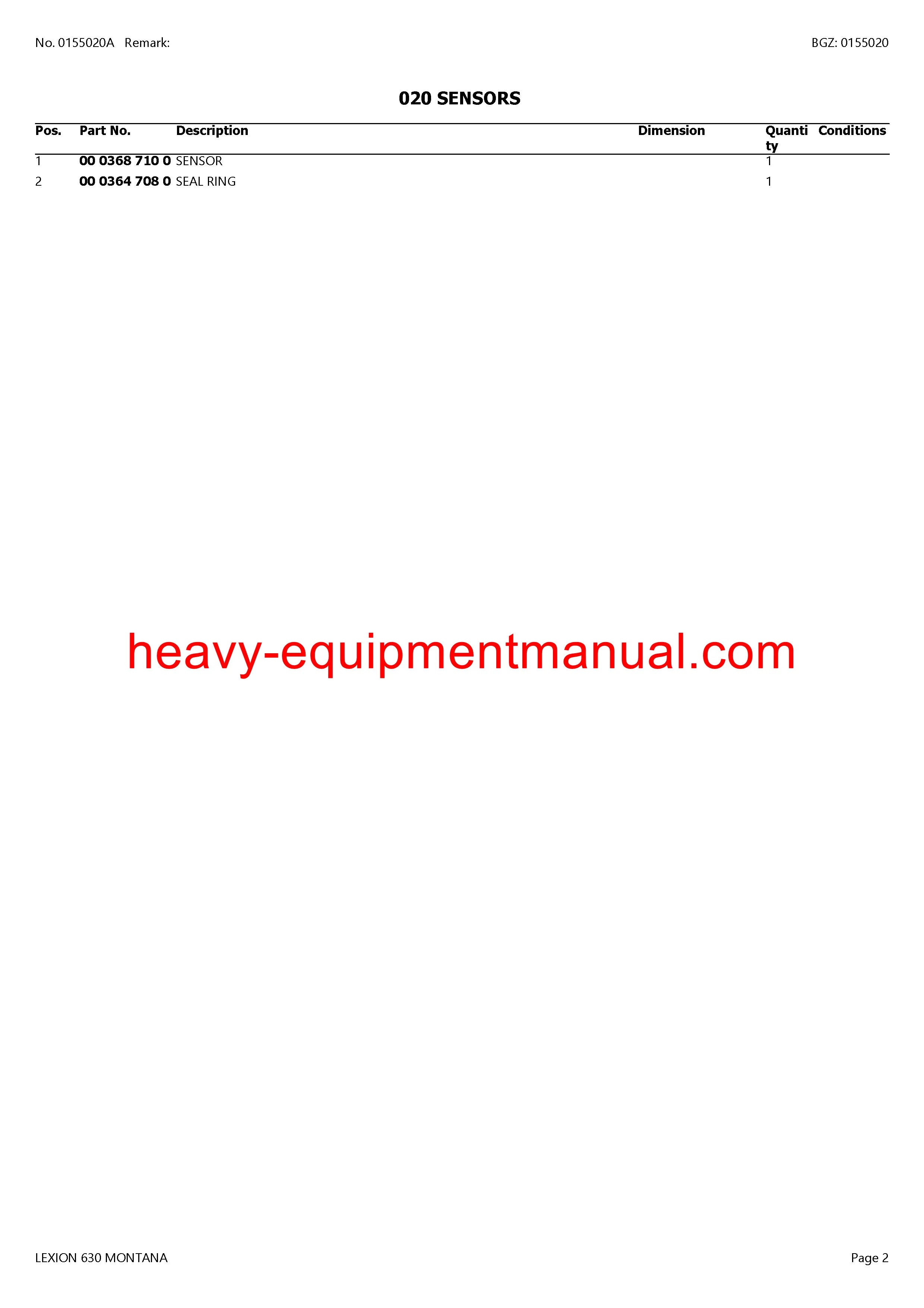 PDF Claas 630 Lexion Montana Combine Parts Manual