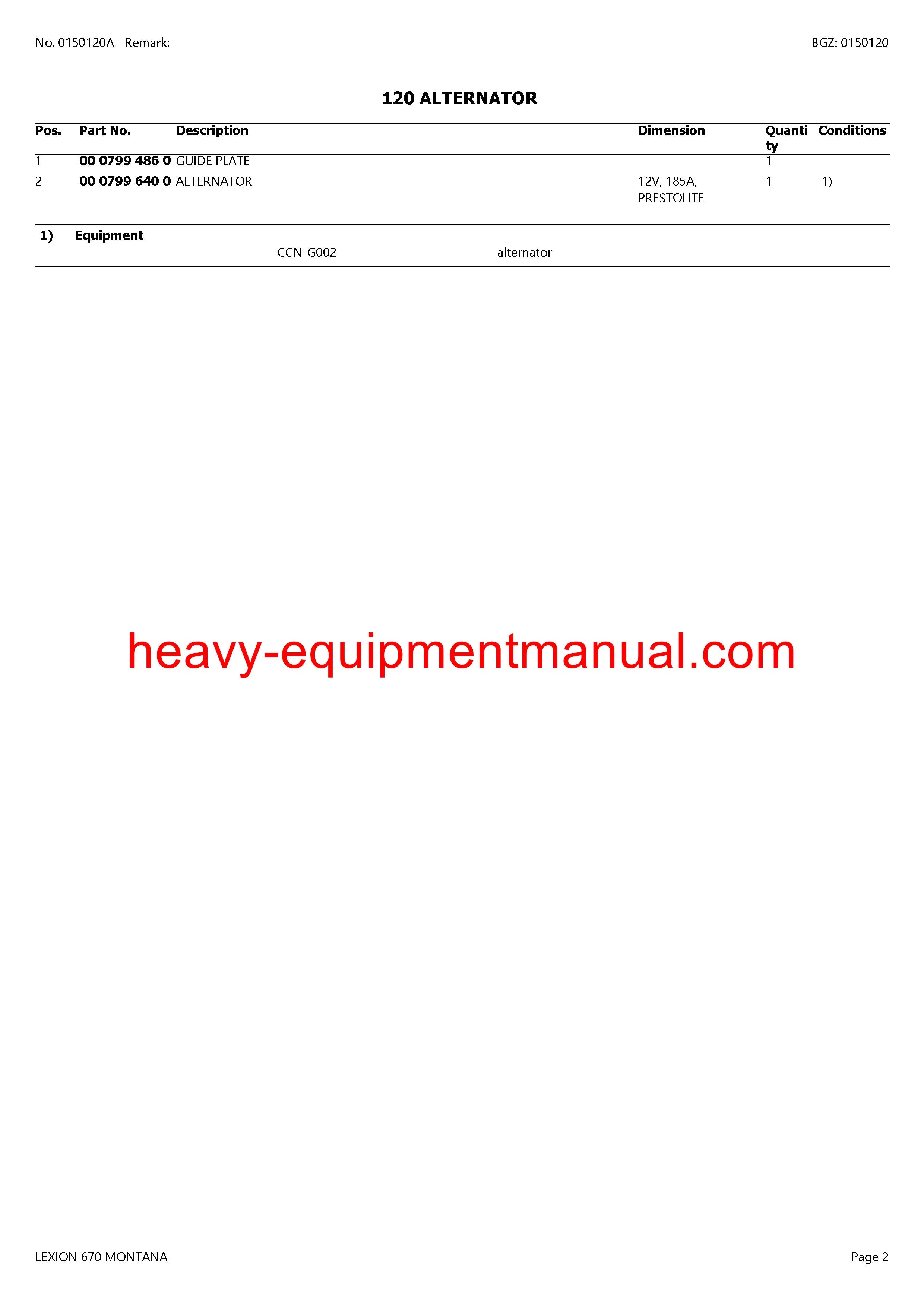 PDF Claas 670 Lexion Montana Combine Parts Manual