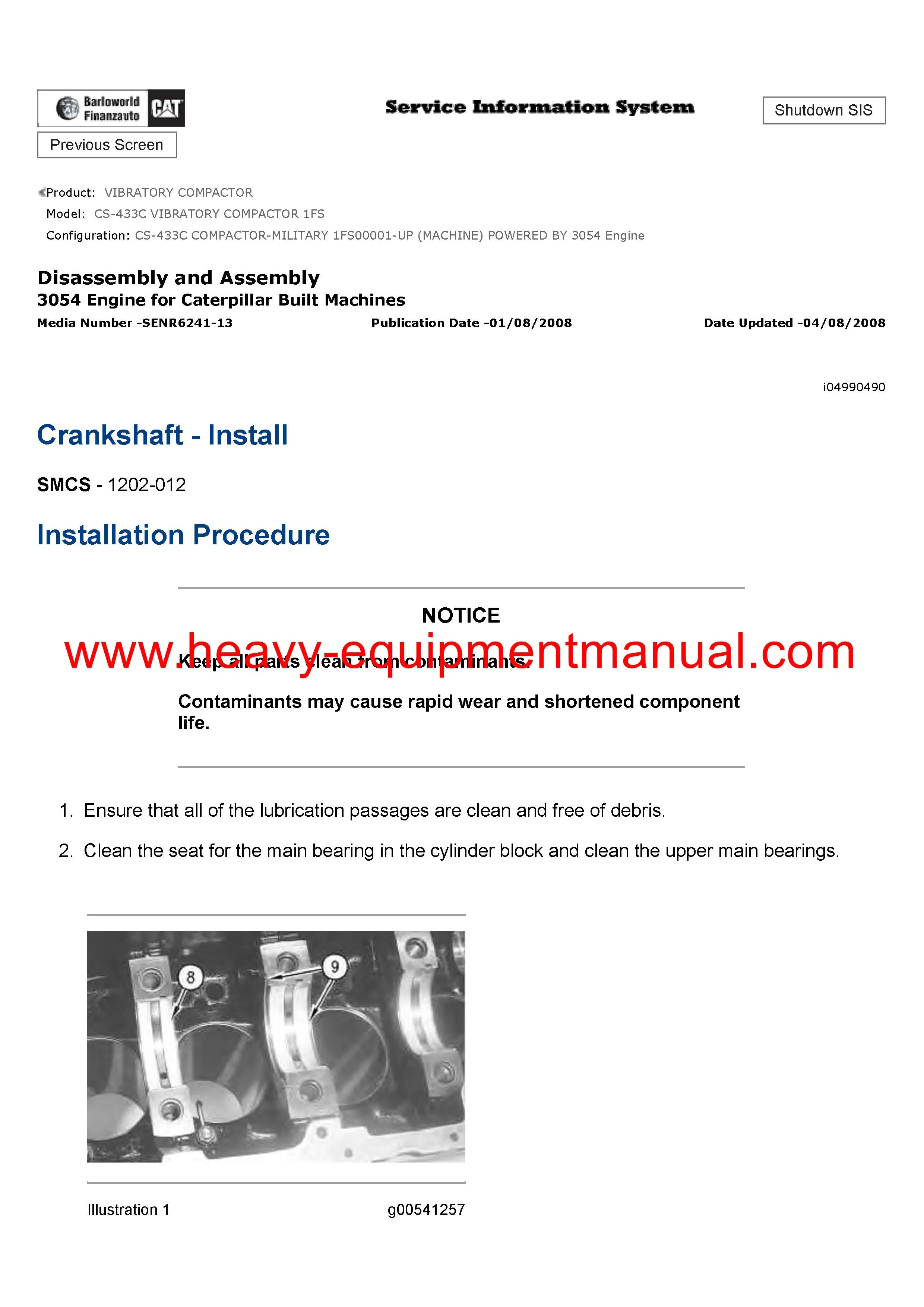 Caterpillar CS-433C VIBRATORY COMPACTOR Service Repair Manual 1FS