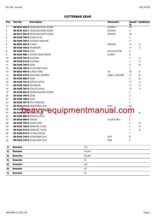 PDF Claas CD 240 - 210 Unifarm Mower Parts Manual