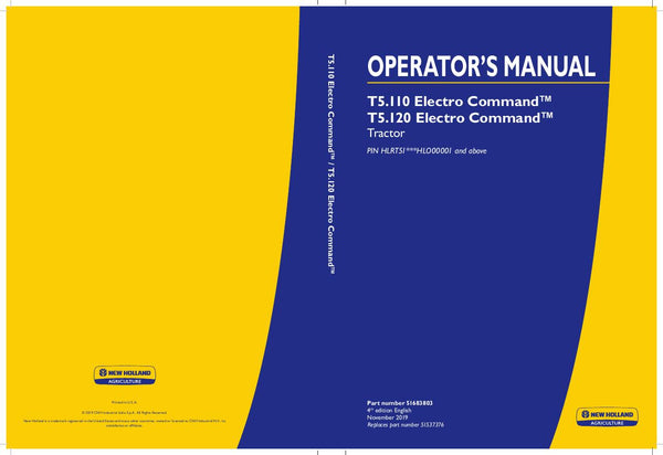 Download New Holland T5.110 Electro Command , T5.120 Electro Command Tractor Operator's Manual (PIN HLRT51***HLO00001 and above) 48186773