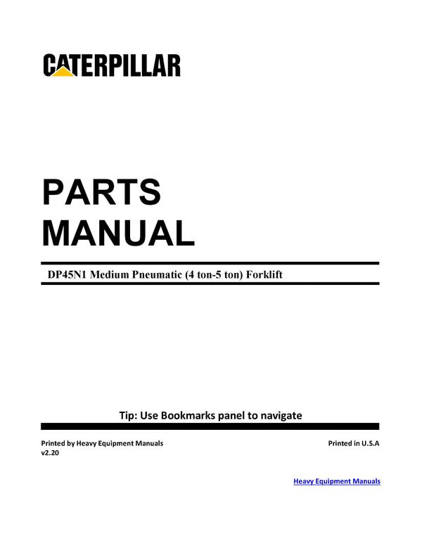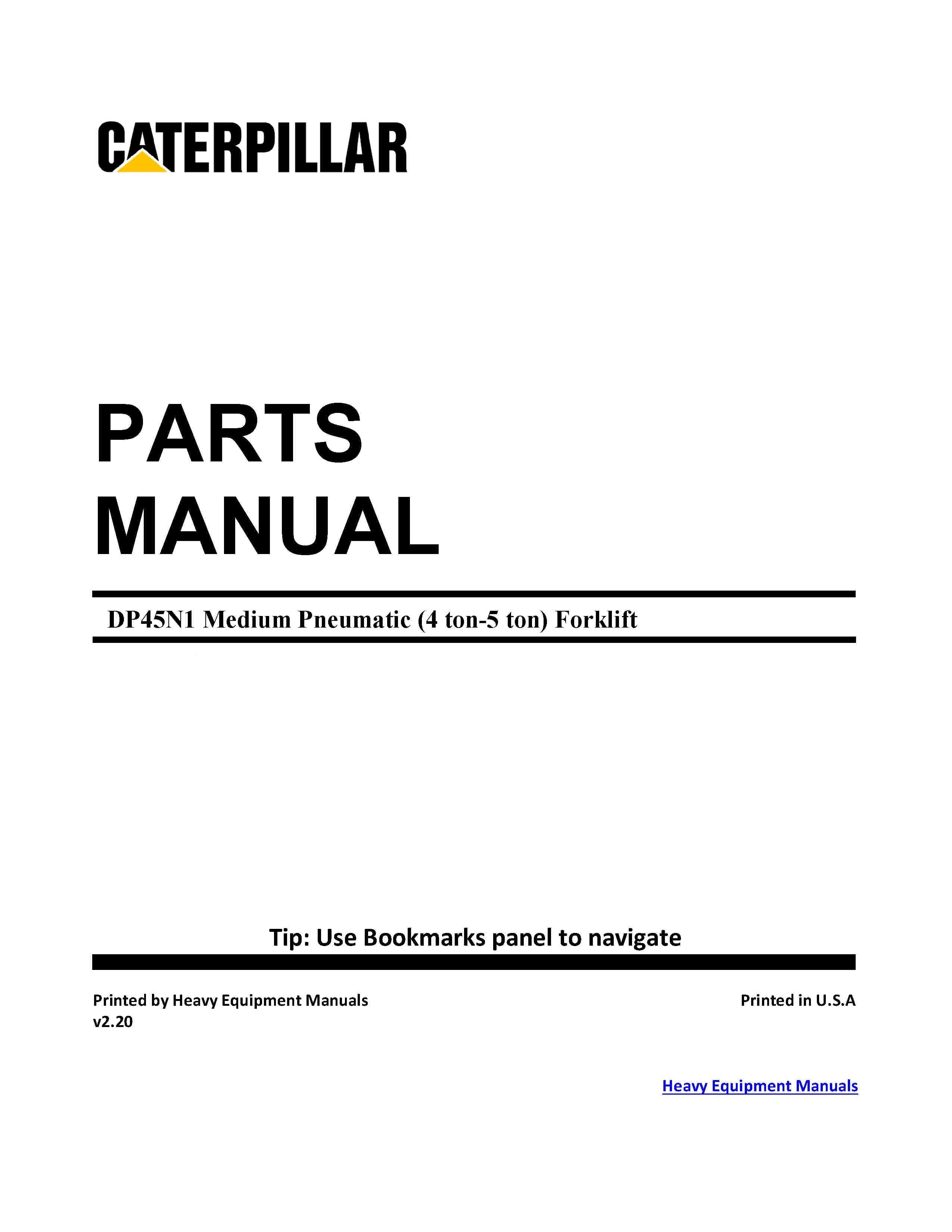 Caterpillar DP45N1 Medium Pneumatic (4 ton-5 ton) Forklift Parts Manual
