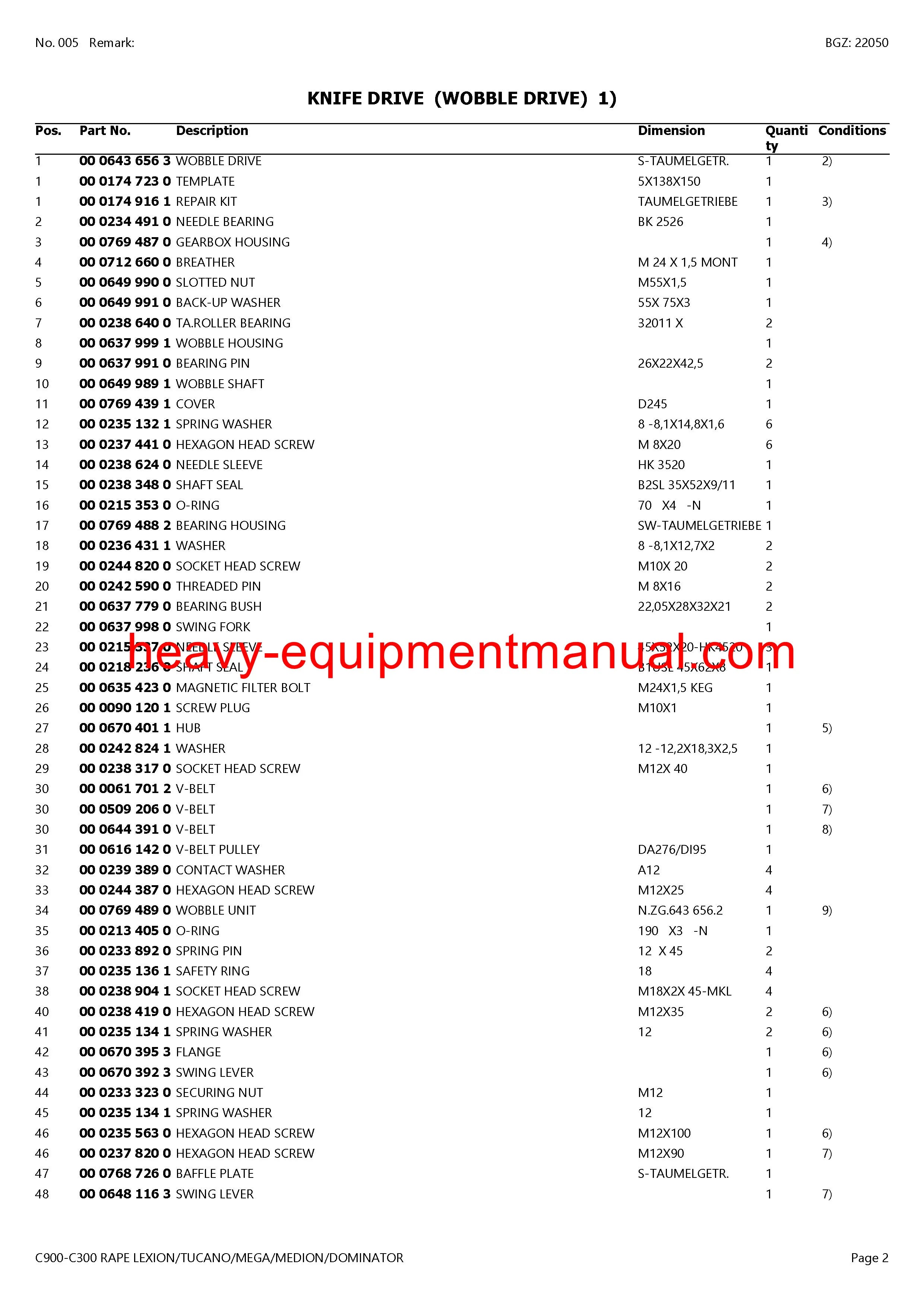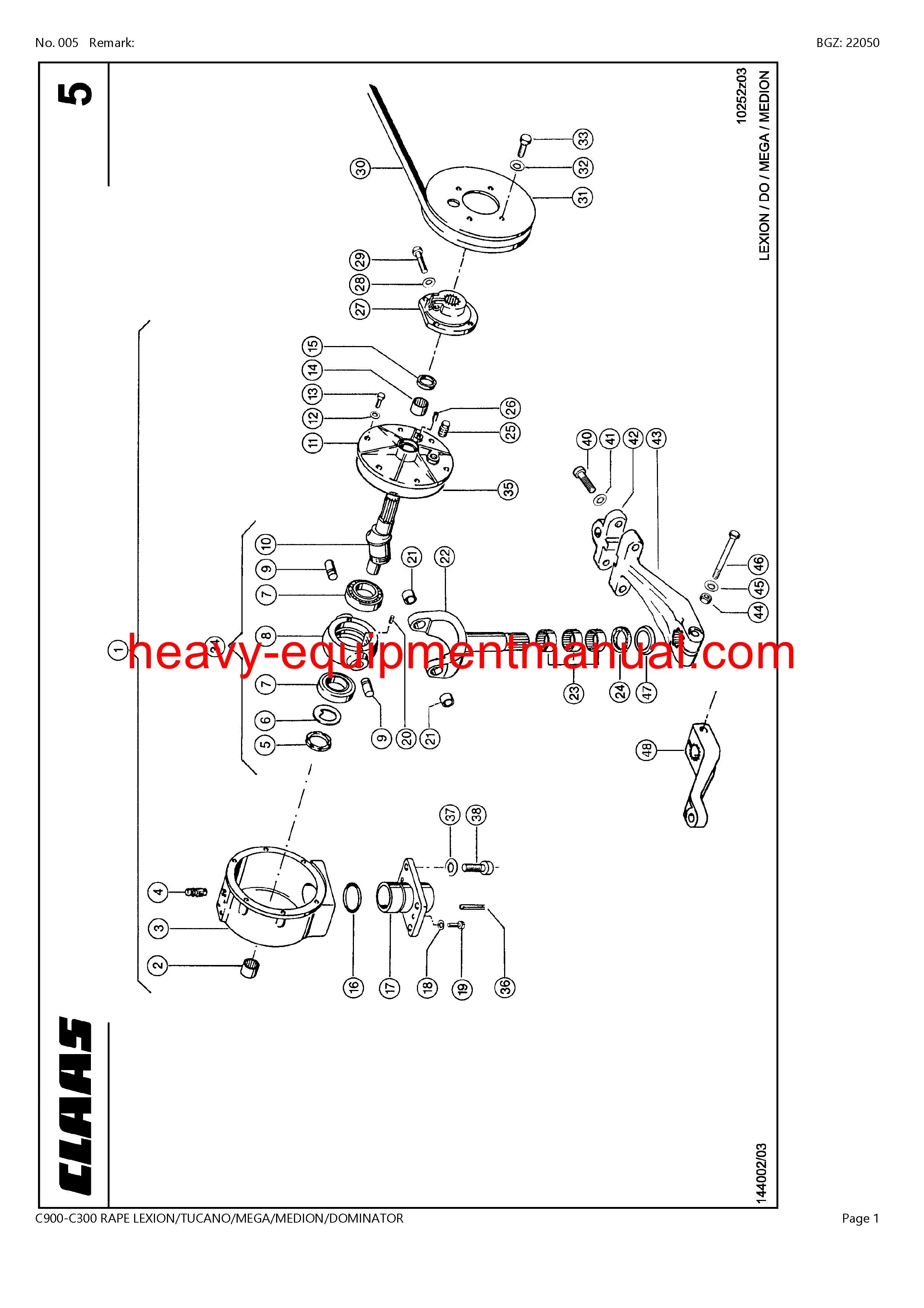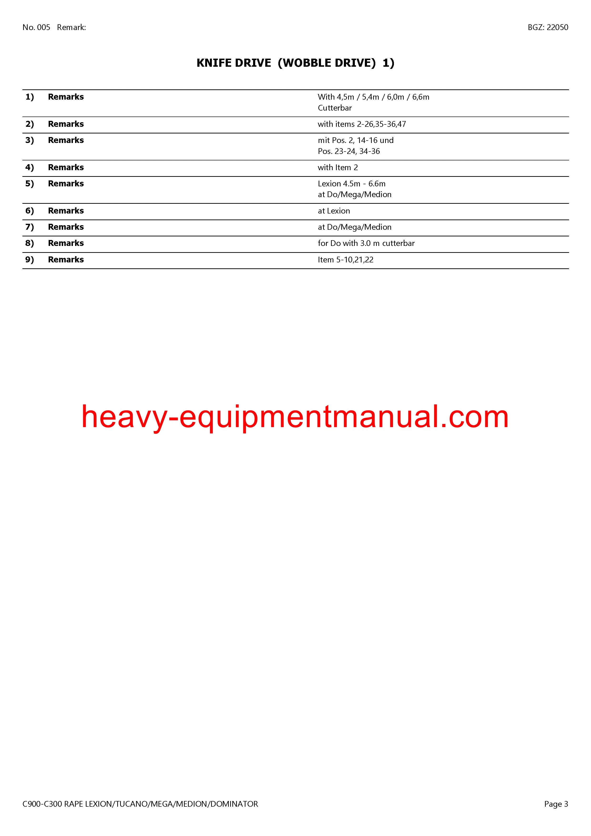 Download Claas C900-C300 Rape Lexion Tucano Mega Medion Dominator Cutterbar Parts Manual