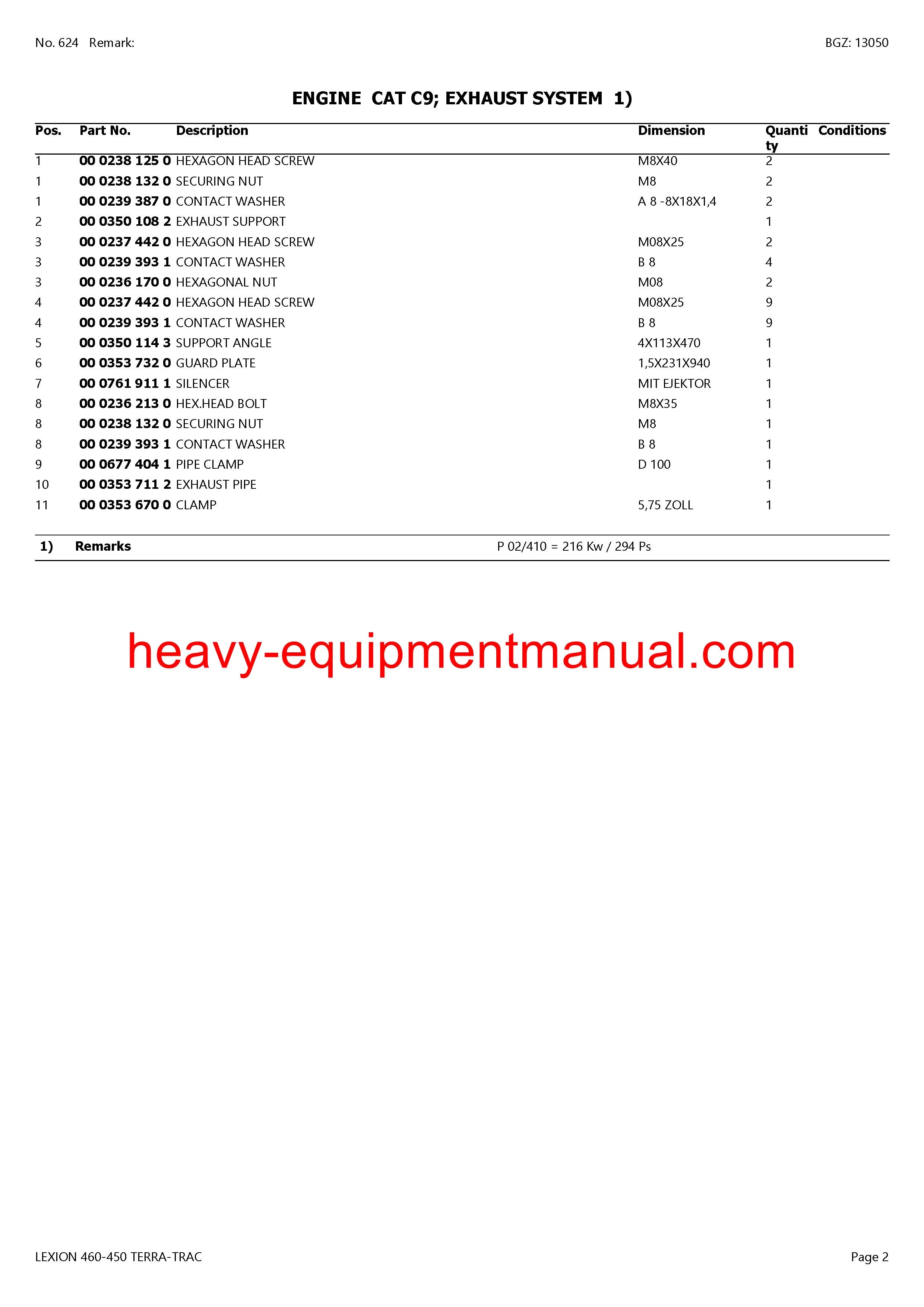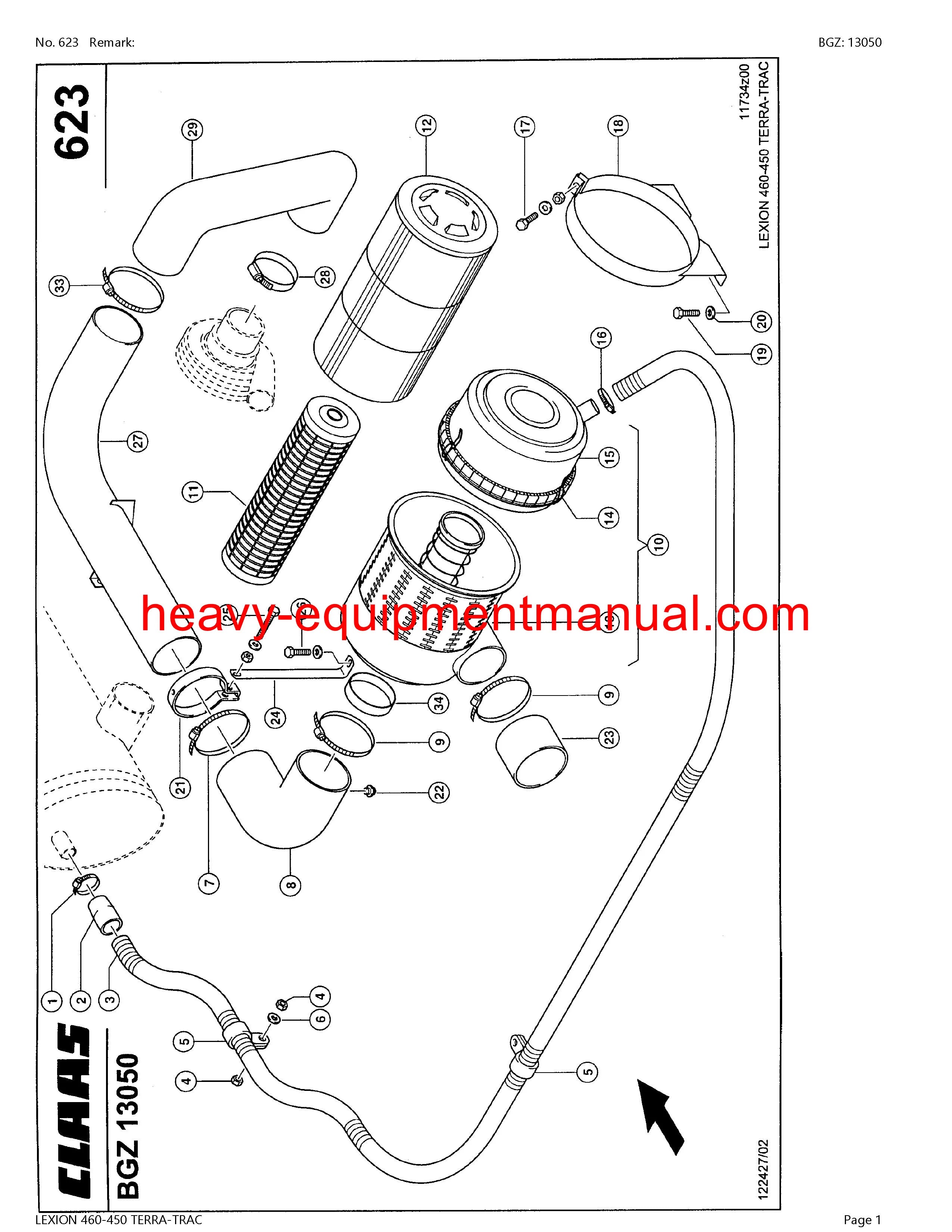 CLAAS LEXION 460-450 TERRA-TRAC COMBINE PARTS CATALOG MANUAL (SN: 54700011-54799999)
