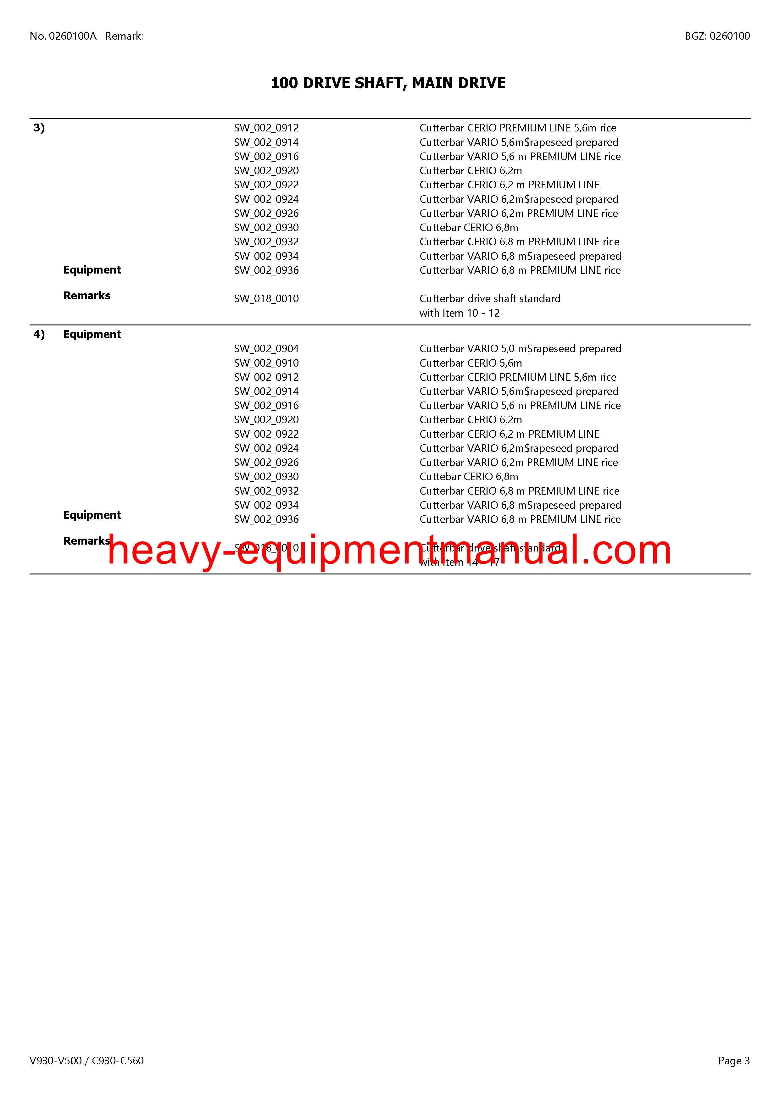 DOWNLOAD CLAAS V930-V500 / C930-C560 CUTTERBAR PARTS CATALOG MANUAL (SN: 52800011-52899999)