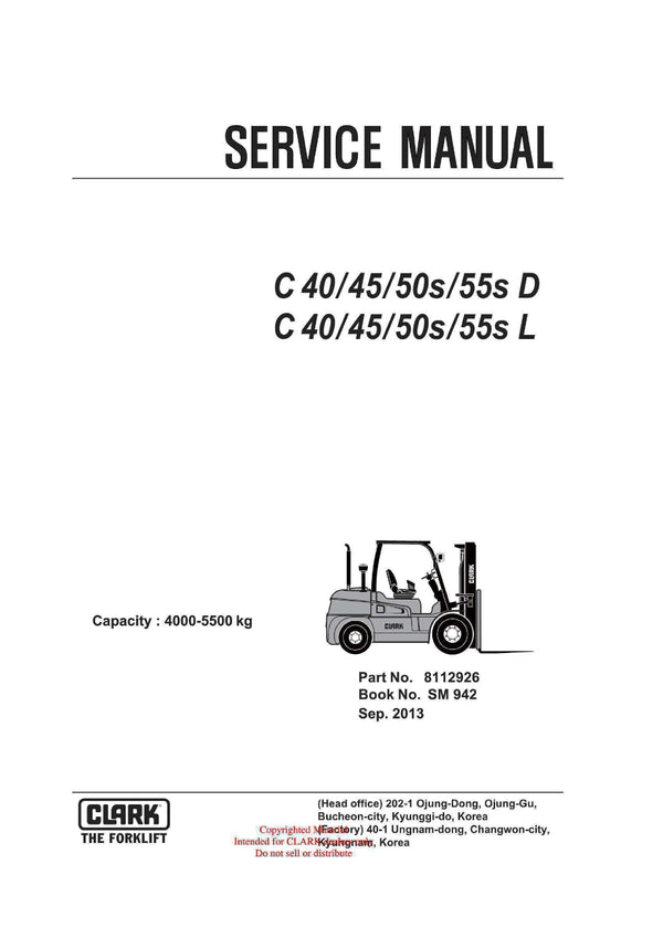 Clark C 40 45 50s 55s D L (SM-942) Forklift Service Repair Manual - PDF Download