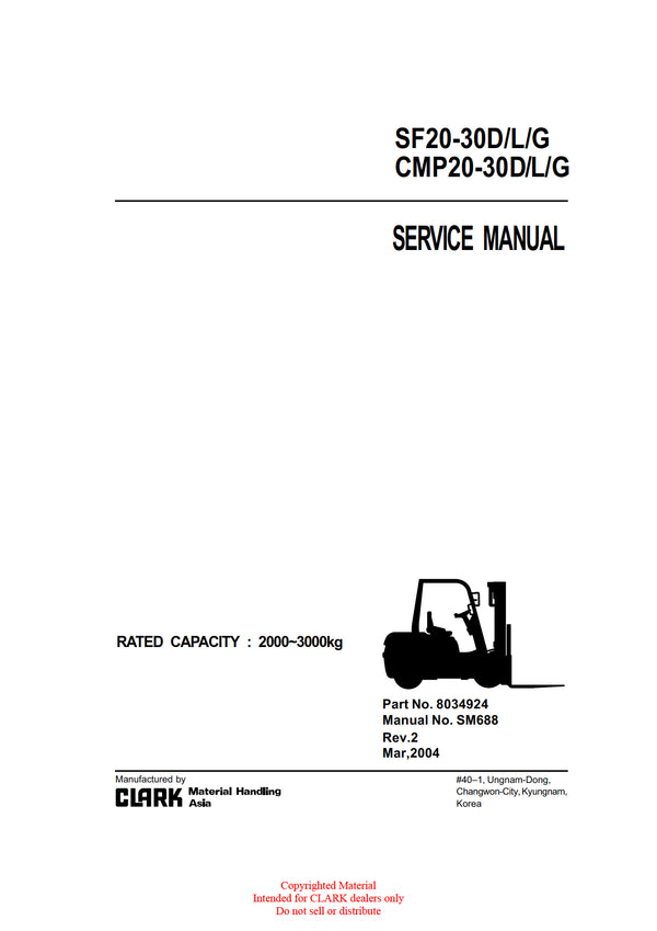 Get Instant Clark SM-688 CMP 20-30 Forklift Service Repair Manual - Download PDF