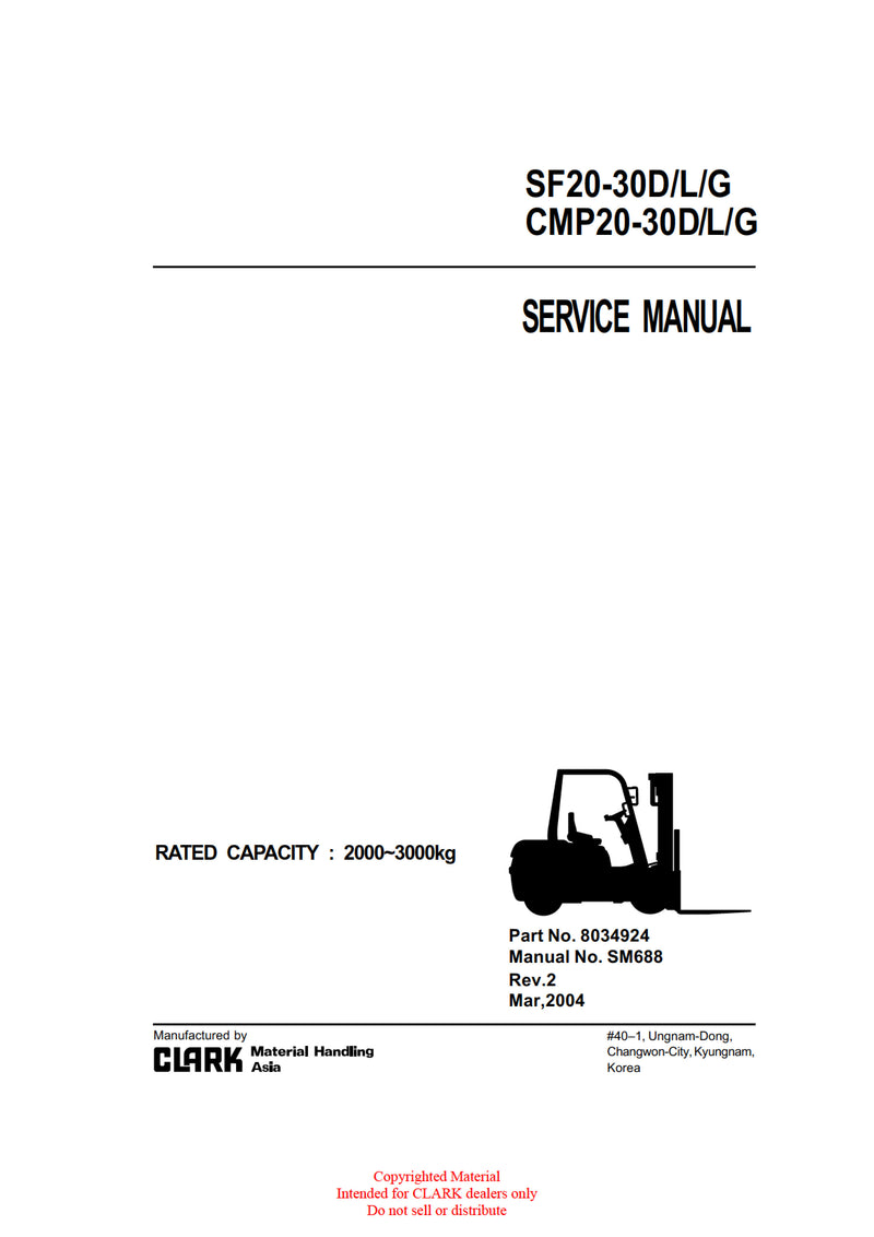 Clark CMP 20-30 (SM-688) Forklift Service Repair Manual - PDF Download