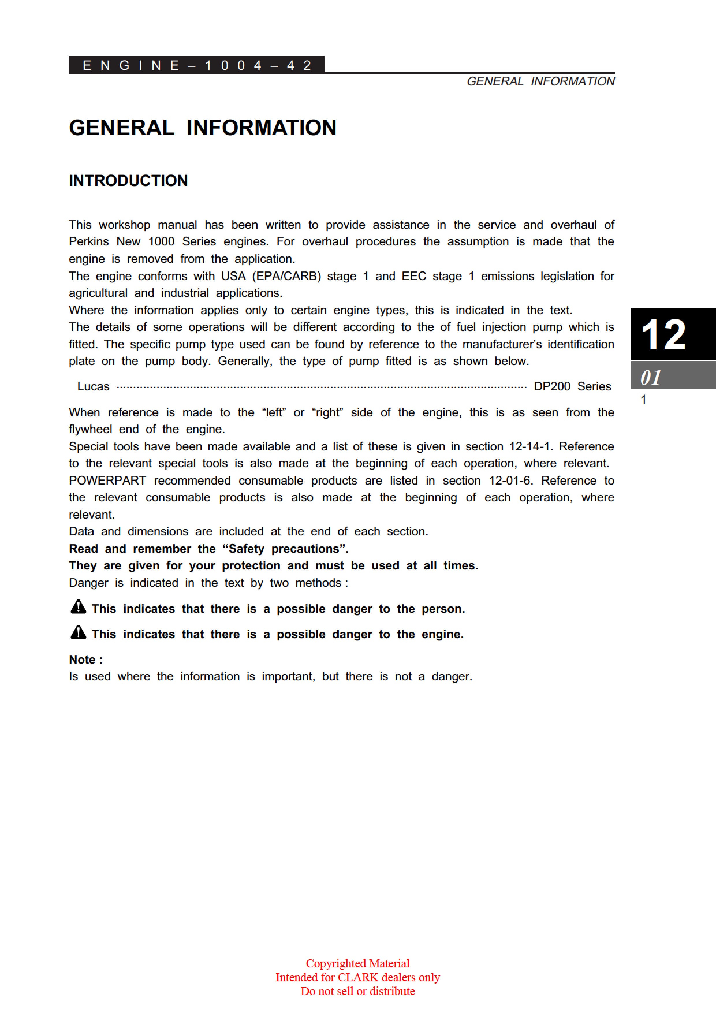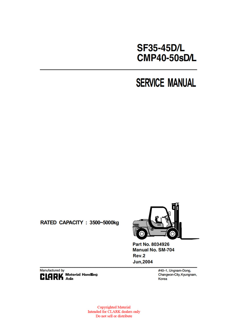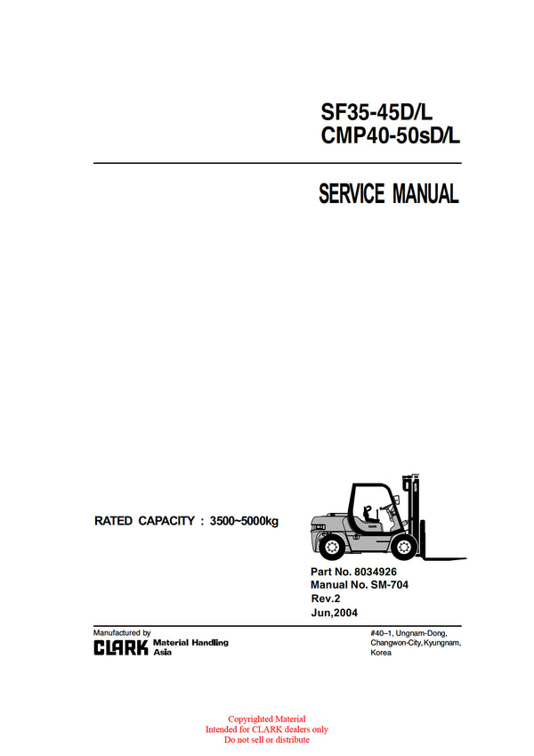 Get Instant Clark SM-704 CMP 40-50 Forklift Service Repair Manual - Download PDF