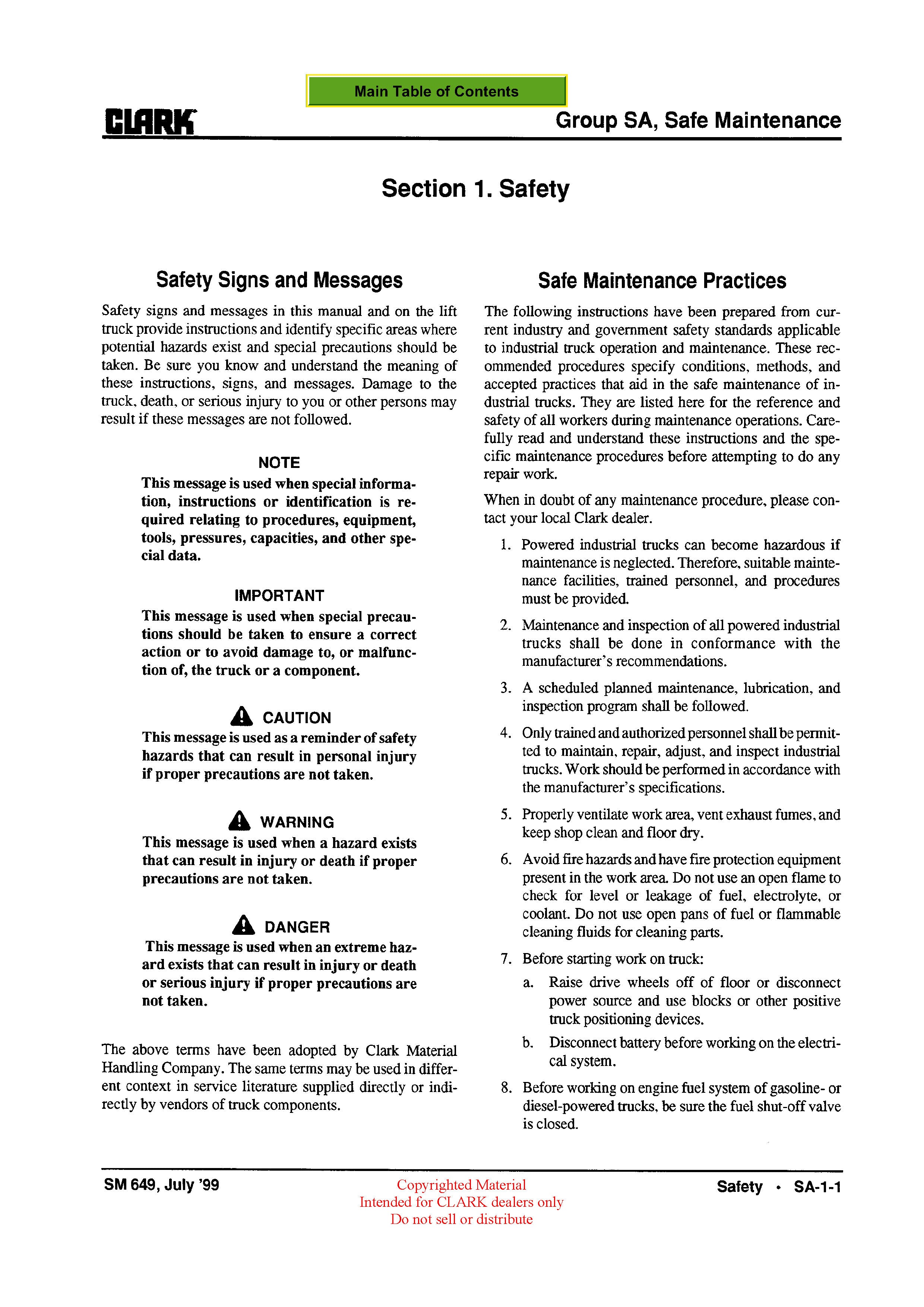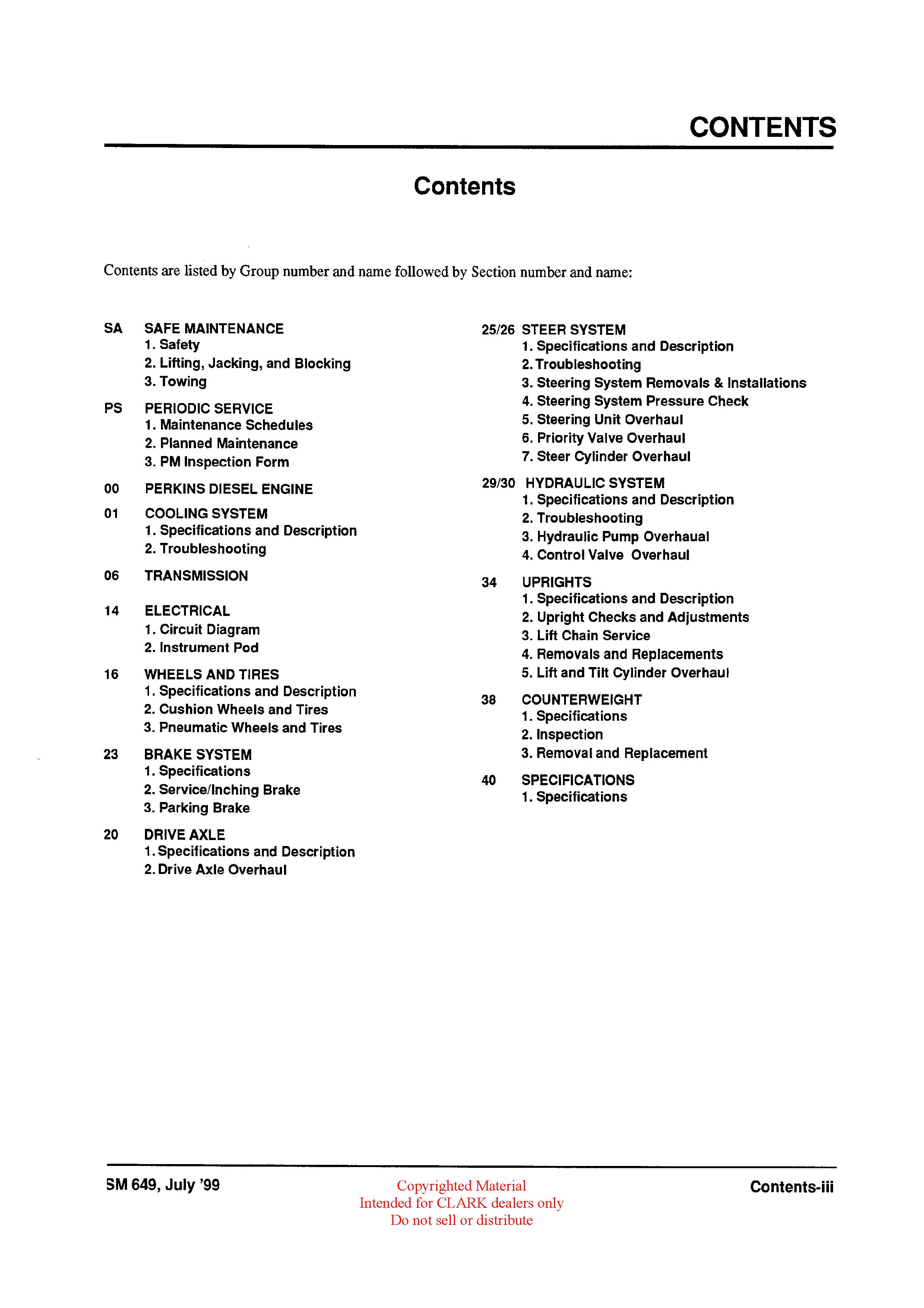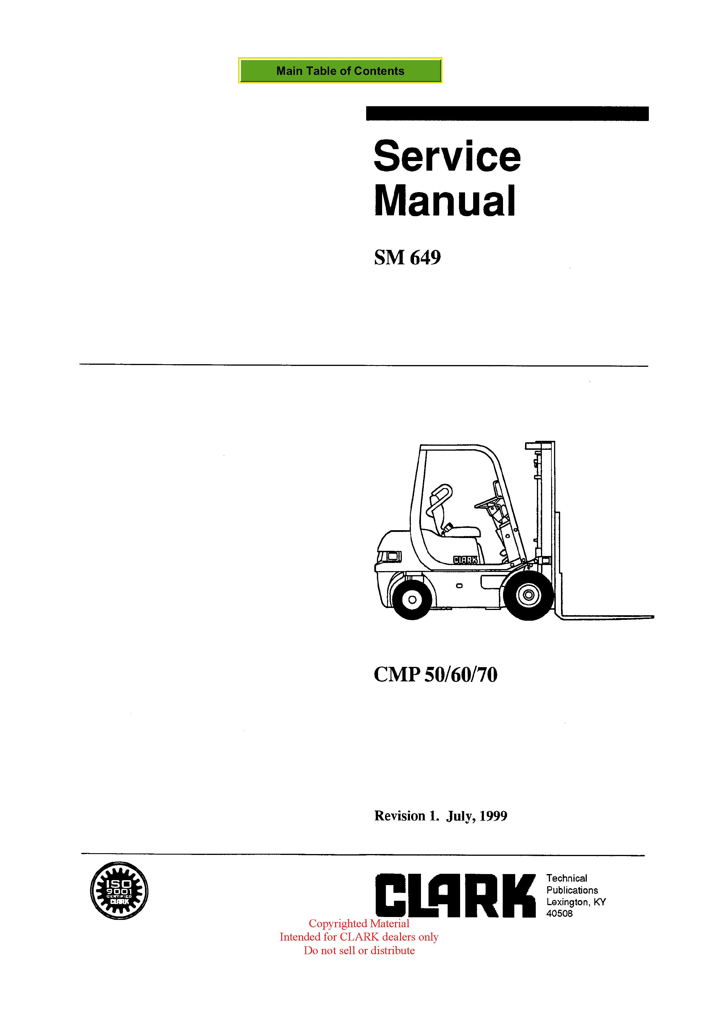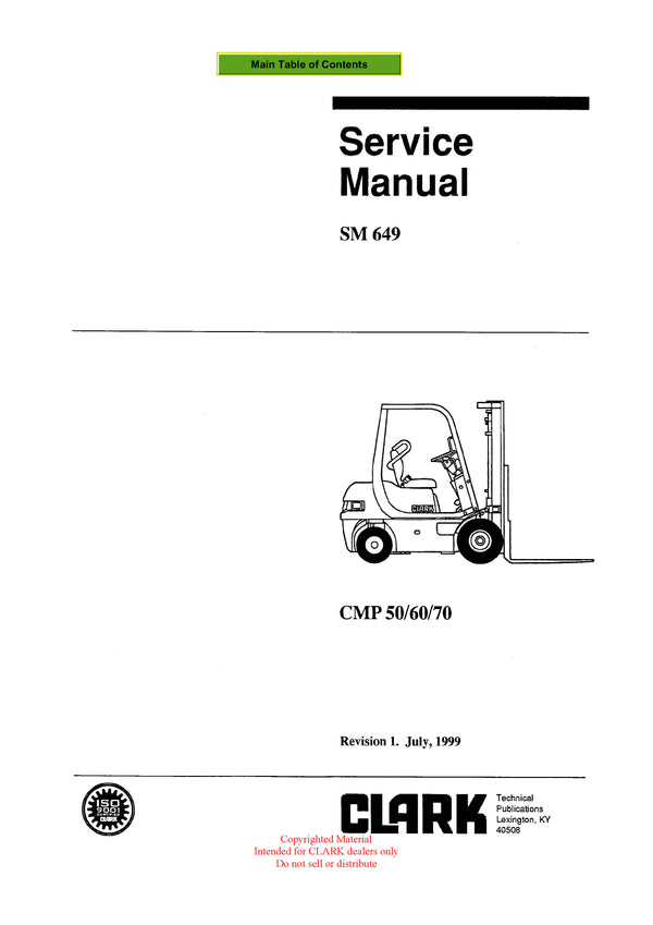 Get Instant Clark SM-649 CMP 50-70 Forklift Service Repair Manual - Download PDF
