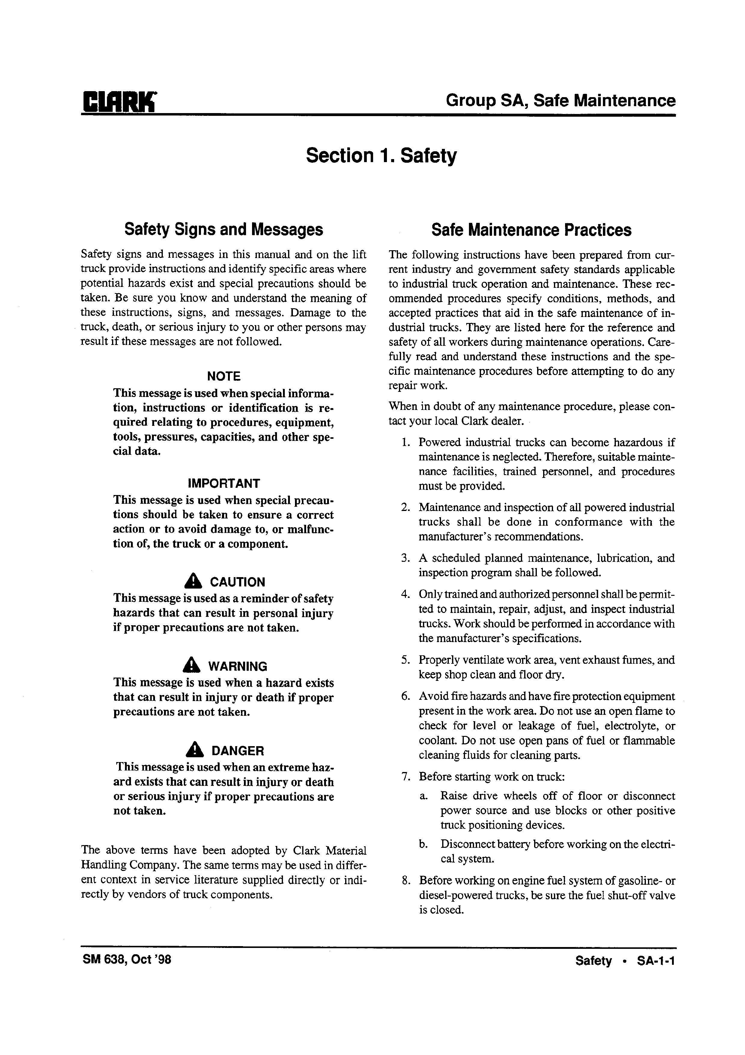 Get Instant Clark SM-638 CMP15-30 Forklift Service Repair Manual - Download PDF