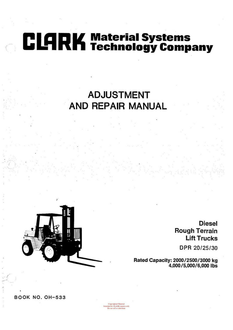 Get Instant Clark DPR 20 25 30 (OH-533) Forklift Overhaul Manual - Download PDF