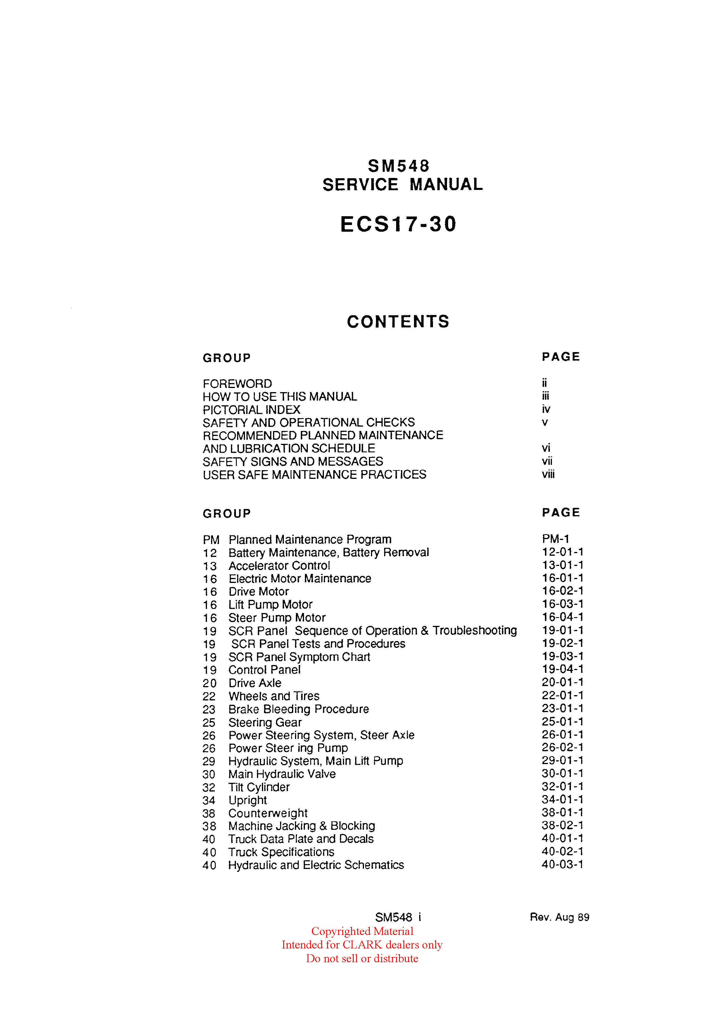 Get Instant Clark SM-548 ECS 17-30 Forklift Service Repair Manual - Download PDF