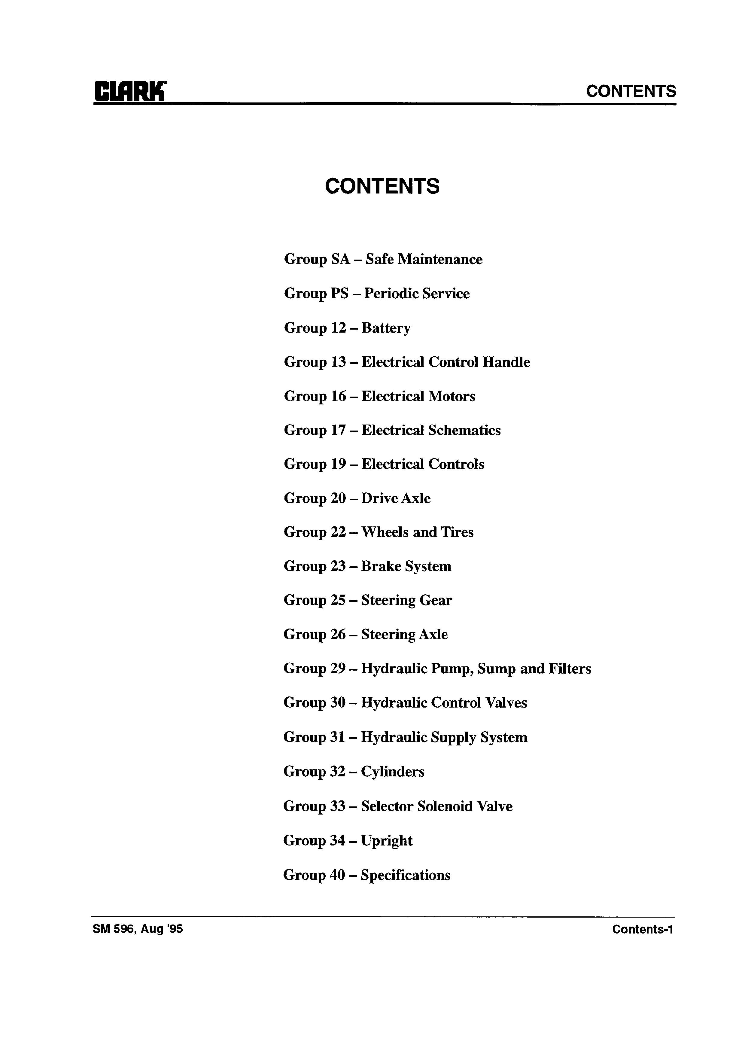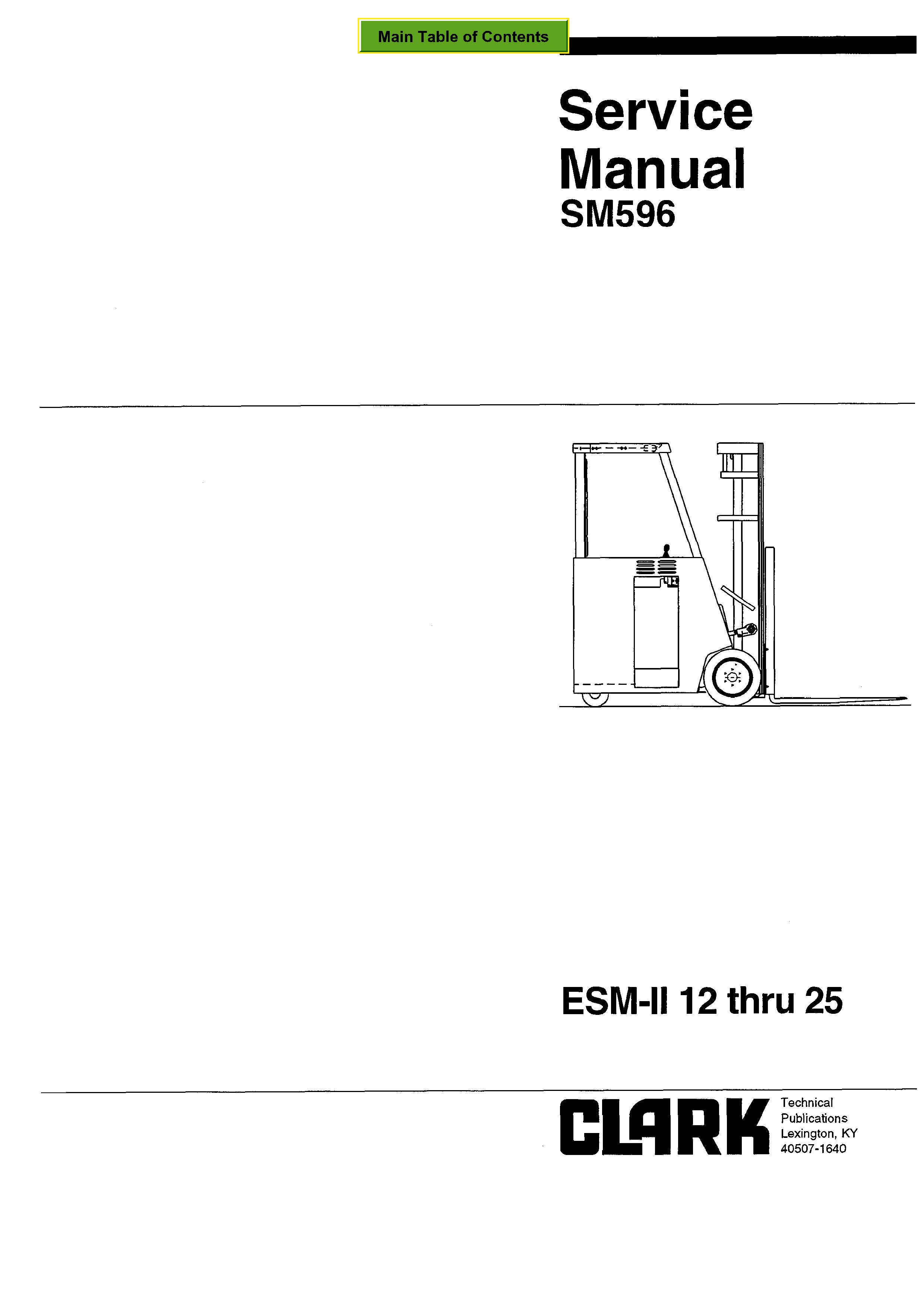 Get Instant Clark SM-596 ESM II Forklift Service Repair Manual - Download PDF