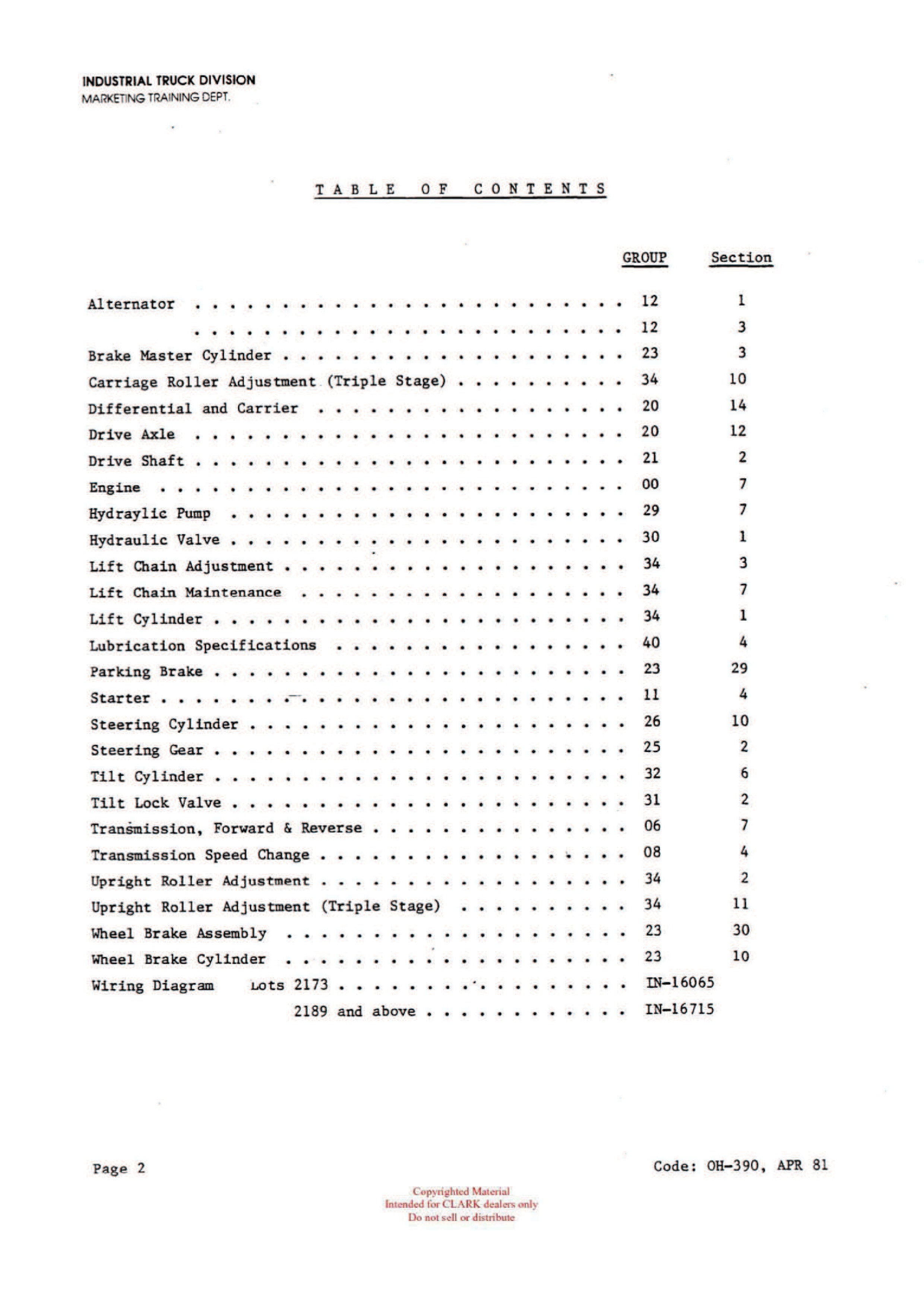 Get Instant Clark IT50 60 70 80D (OH-390) Forklift Overhaul Manual - Download PDF