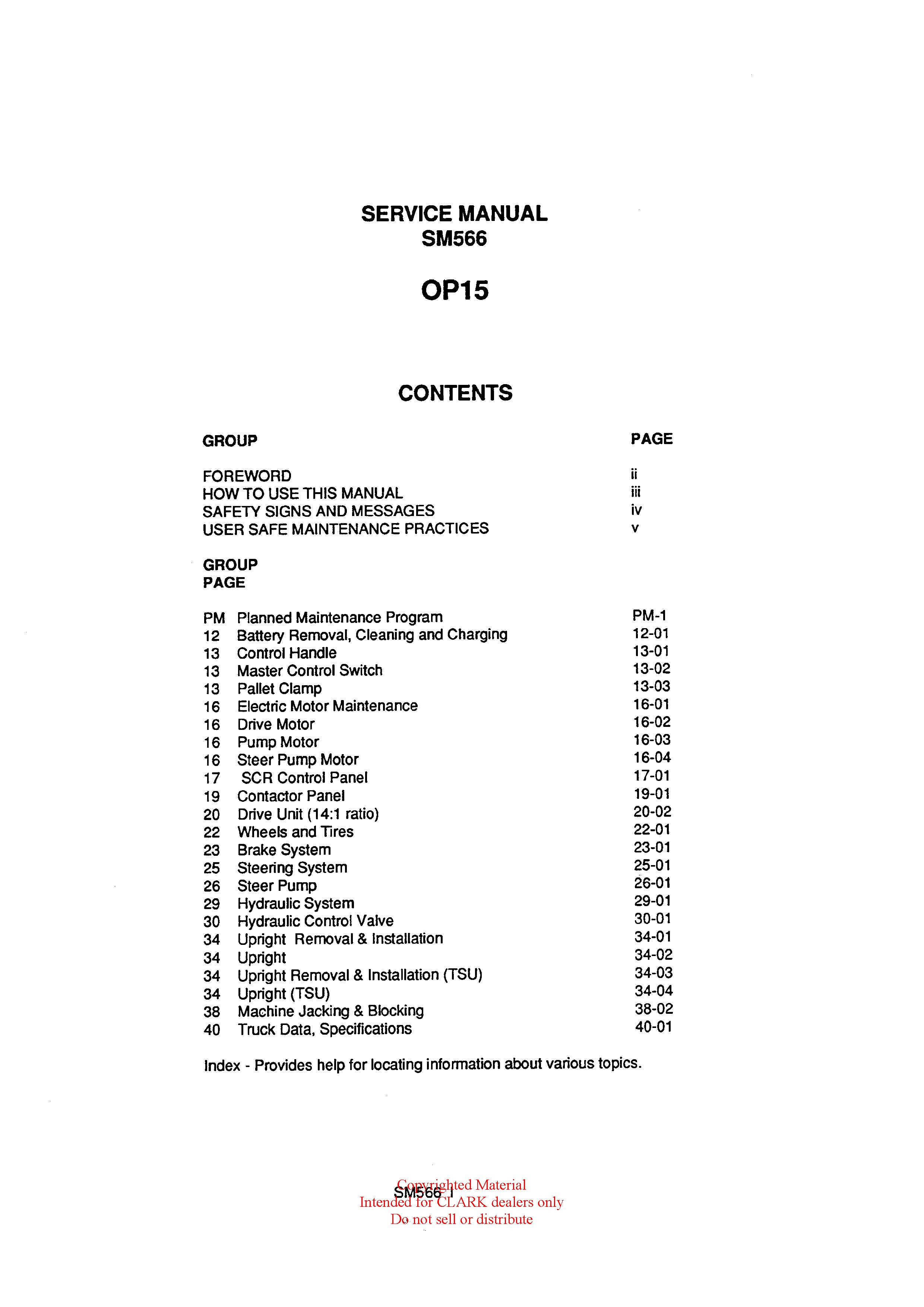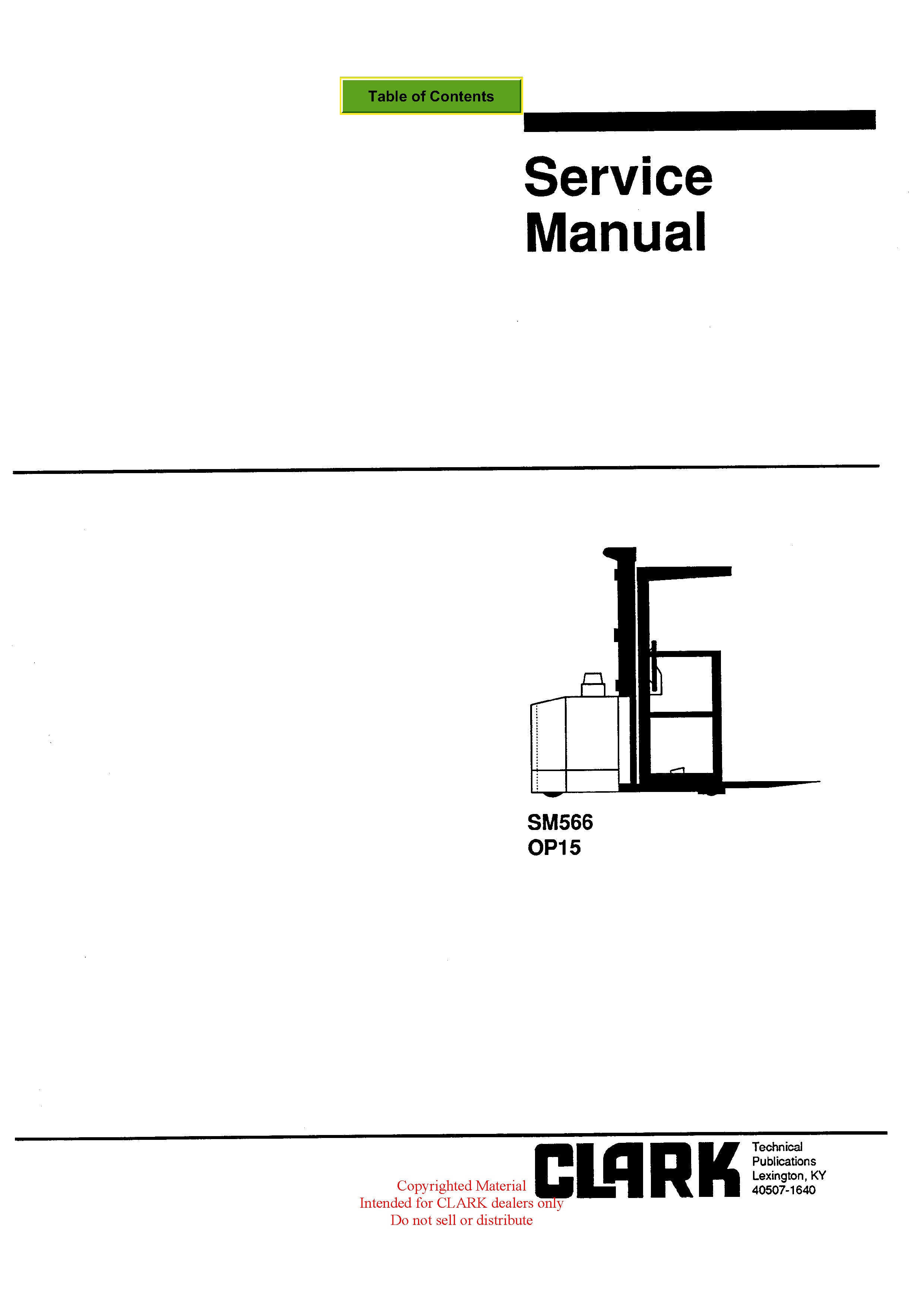 Get Instant Clark SM-566 OP-15 Forklift Service Repair Manual - Download PDF