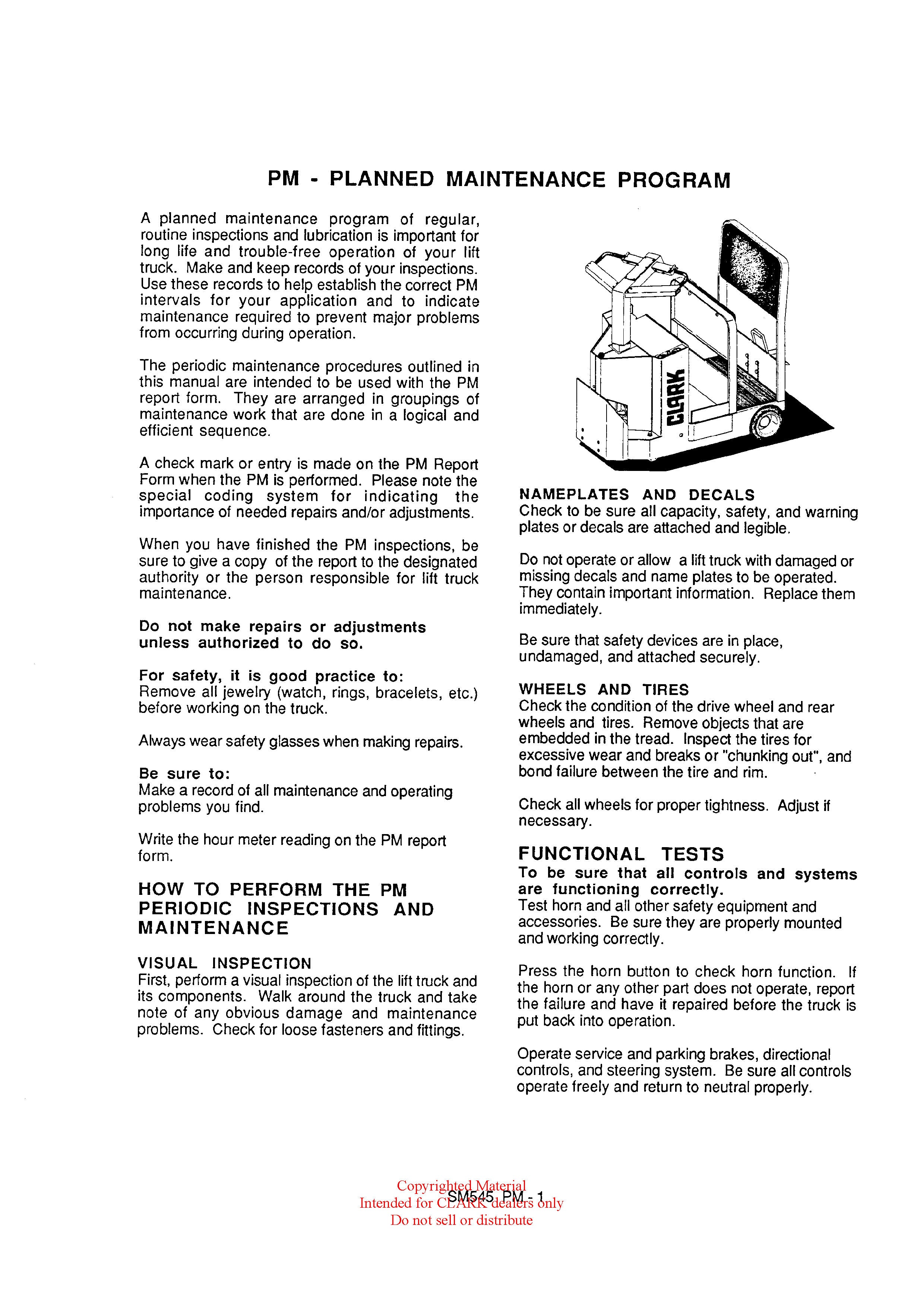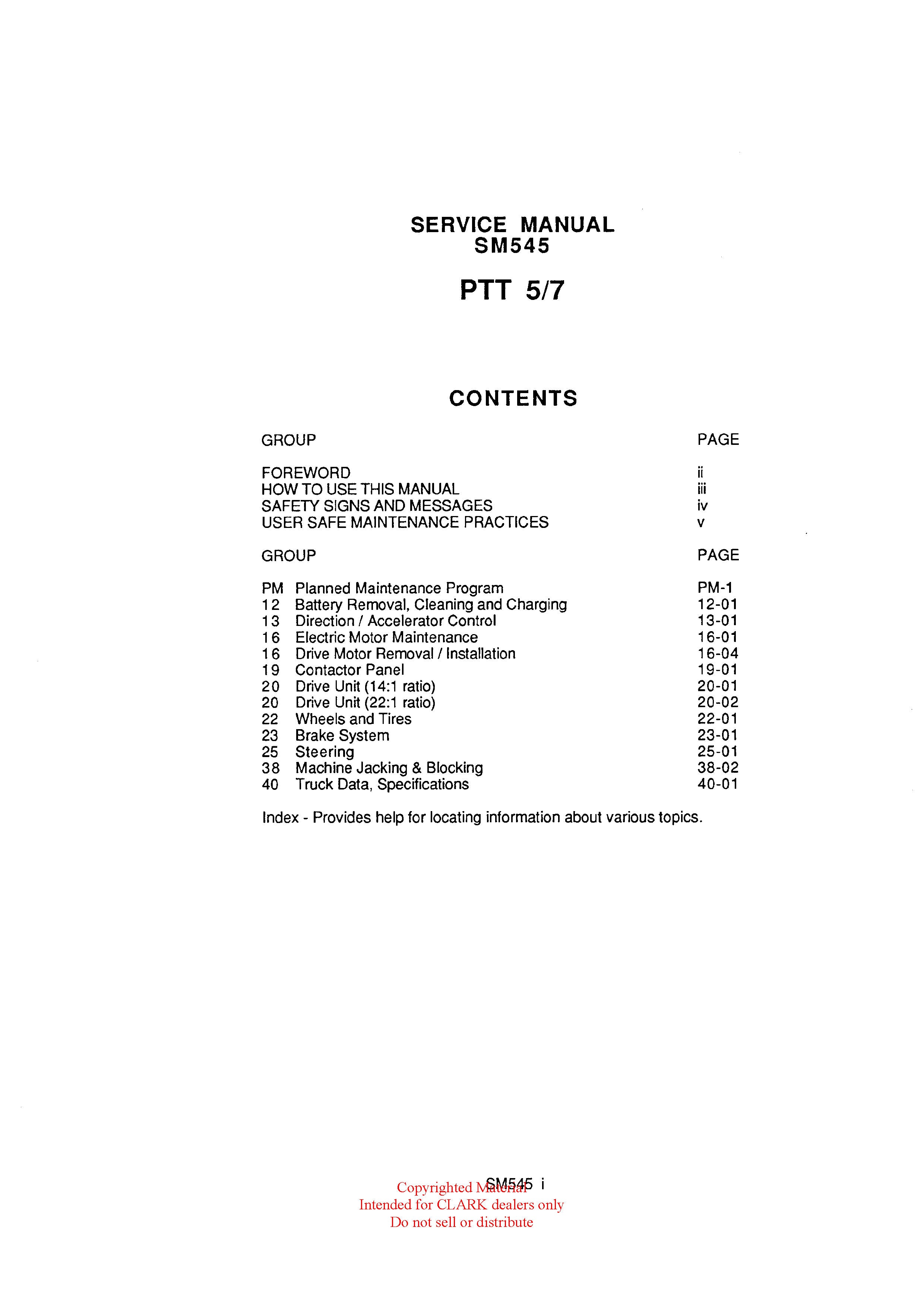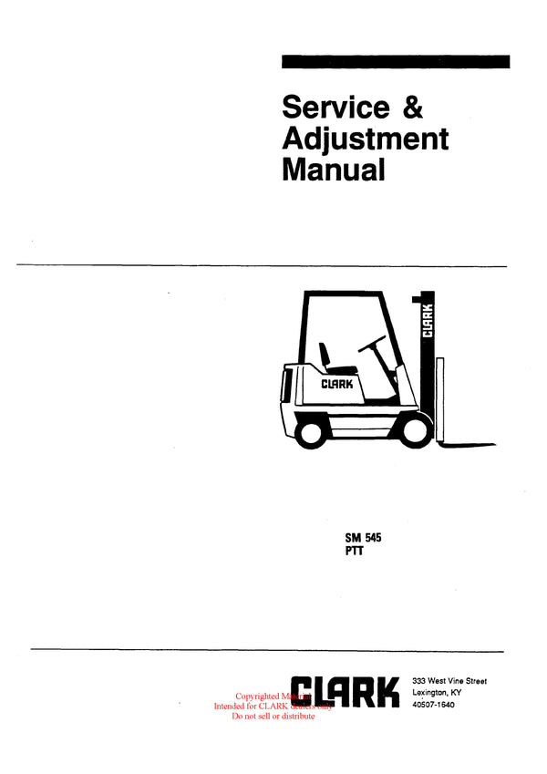Get Instant Clark SM-545 PTT5-7 Forklift Service & Adjustment Manual - Download PDF