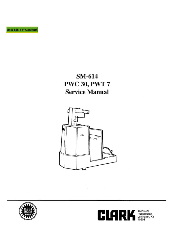 Get Instant Clark SM-614 PWC 30 PWT 7 Pallet Jack Service Repair Manual - Download PDF