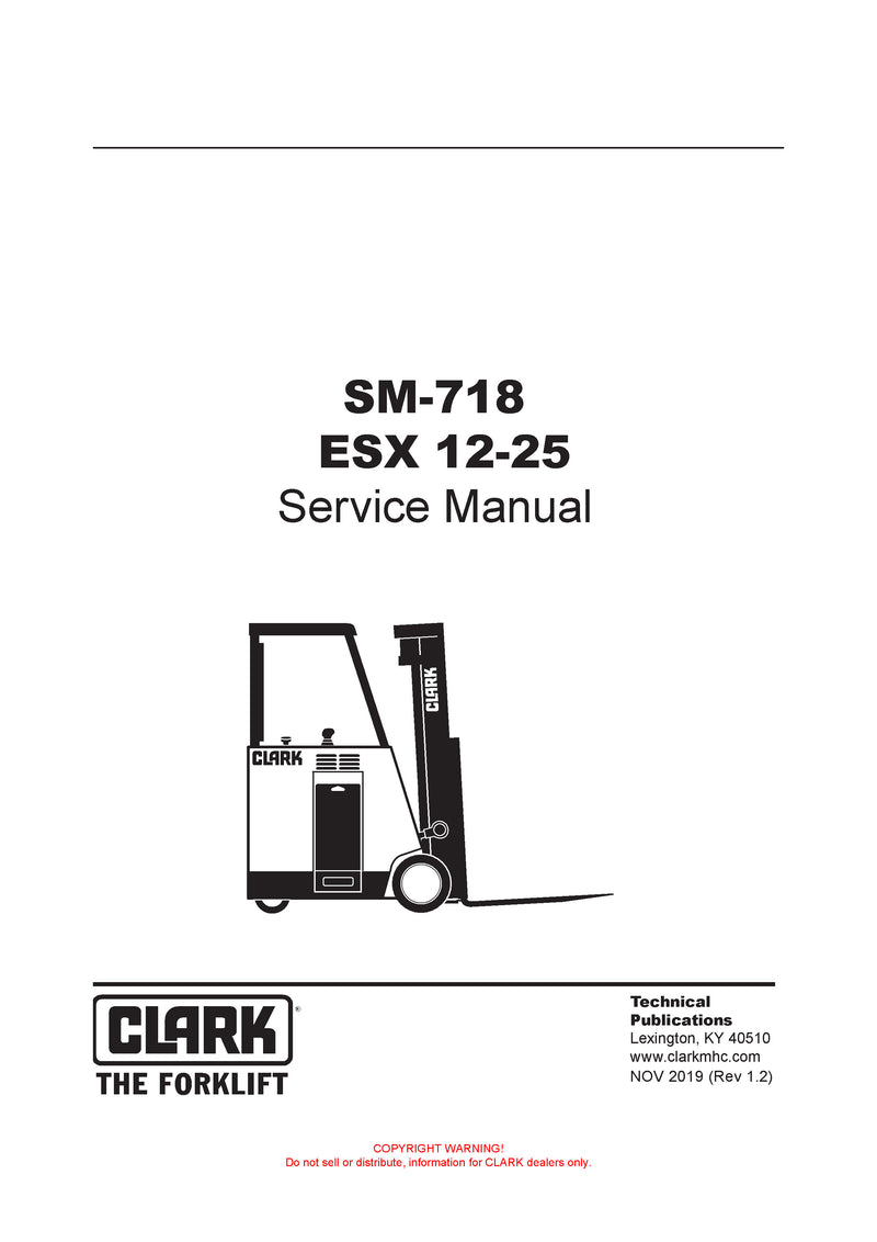 Get Instant Clark SM-718 ESX 12-25 Forklift Service Repair Manual - Download PDF