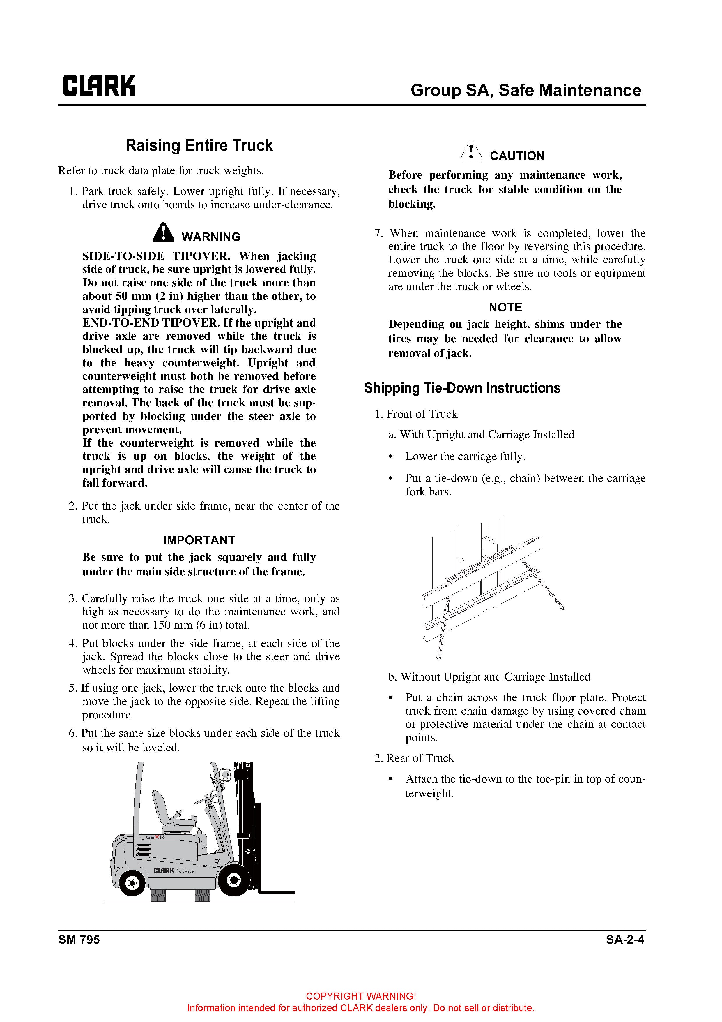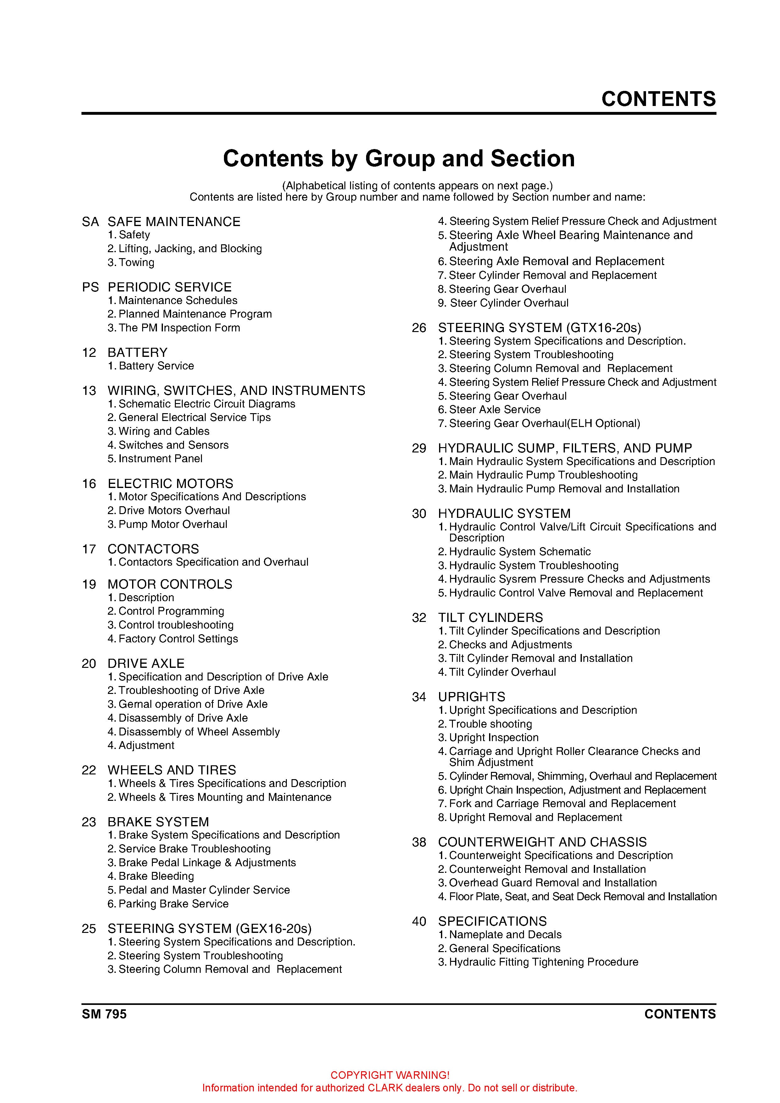 Get Instant Clark SM-795 Forklift Service Repair Manual - Download PDF