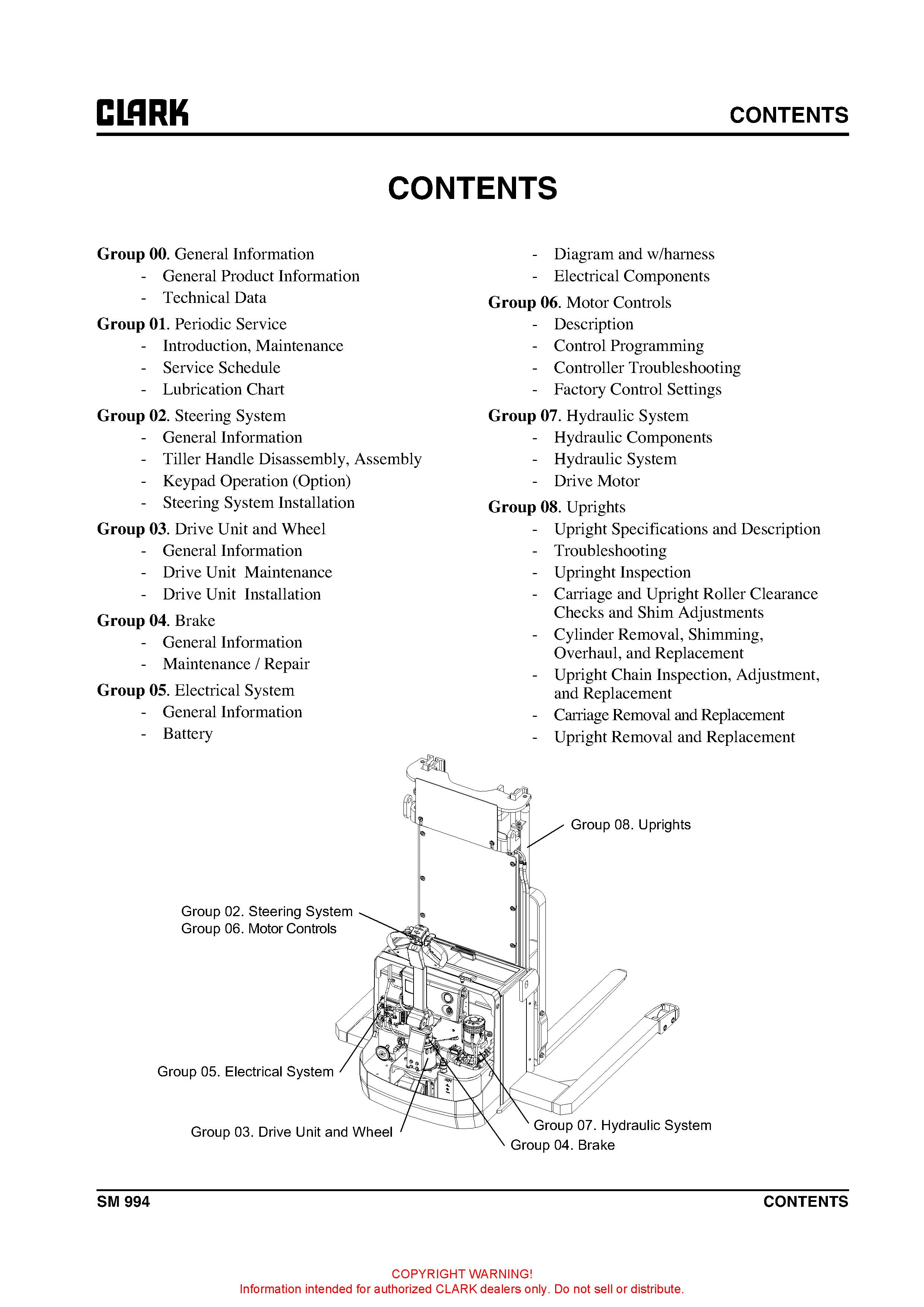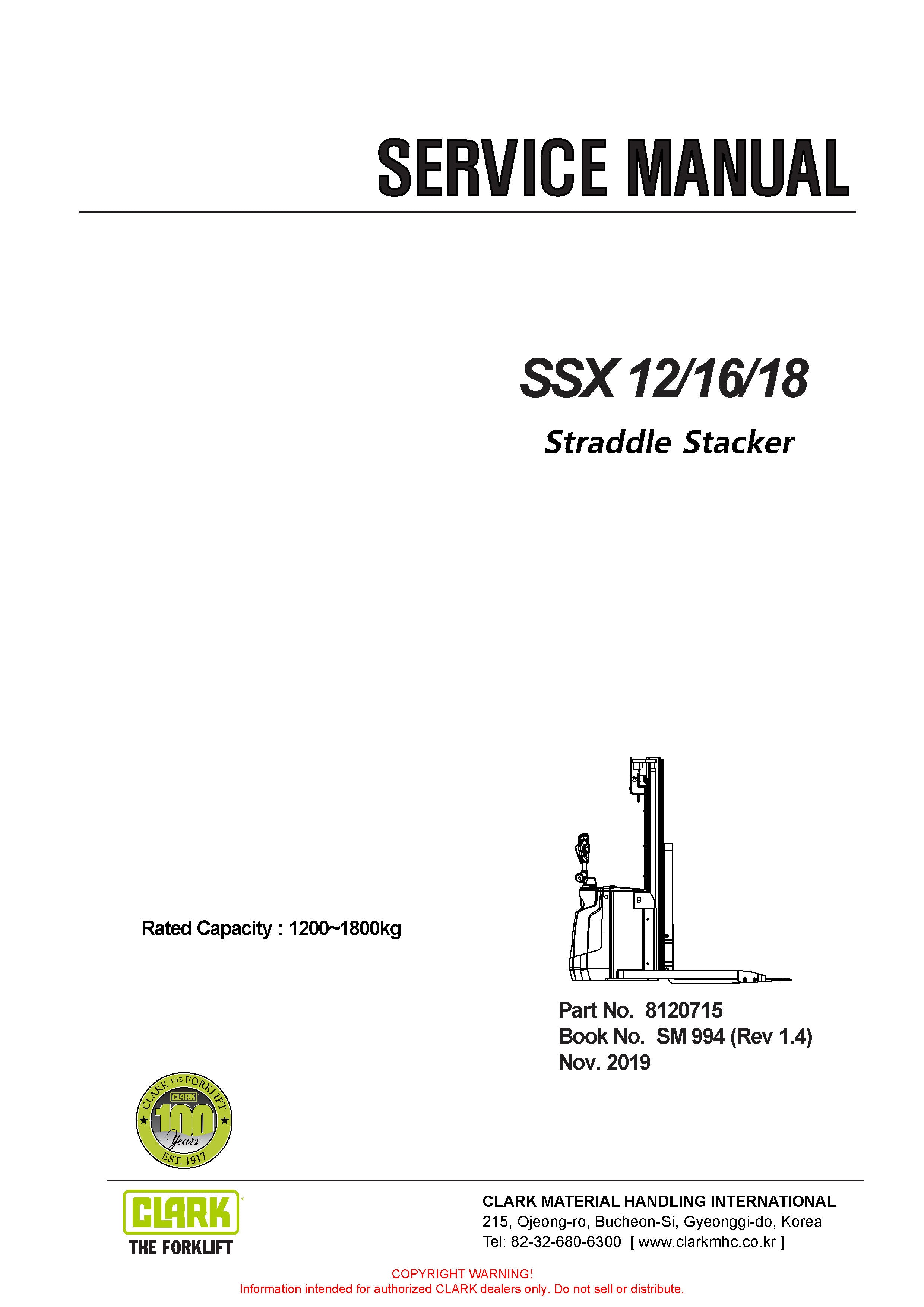 Get Instant Clark SM-994 Straddle Stacker Service Repair Manual - Download PDF