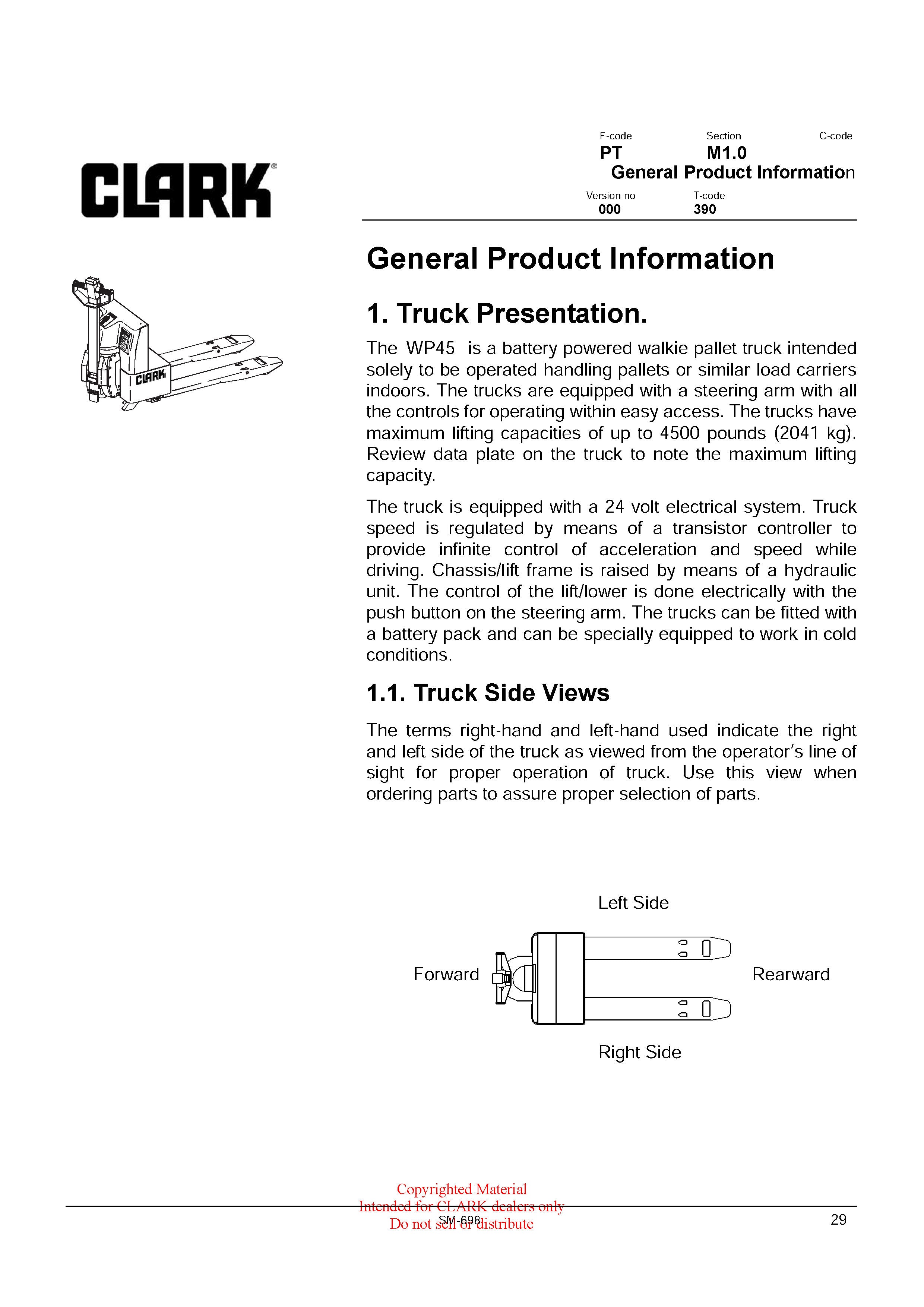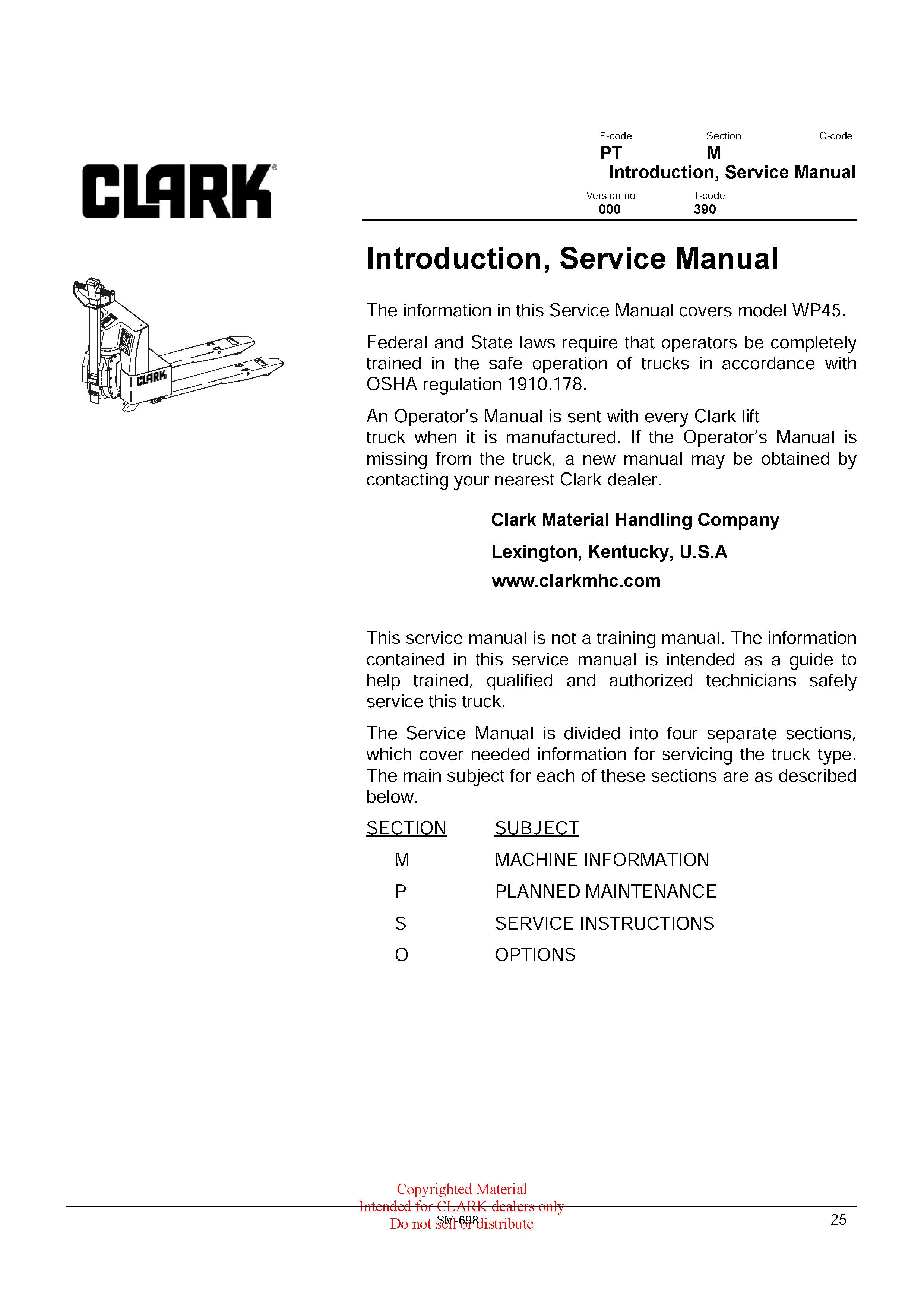 Get Instant Clark SM-698 WP 45 Pallet Jack Service Repair Manual - Download PDF