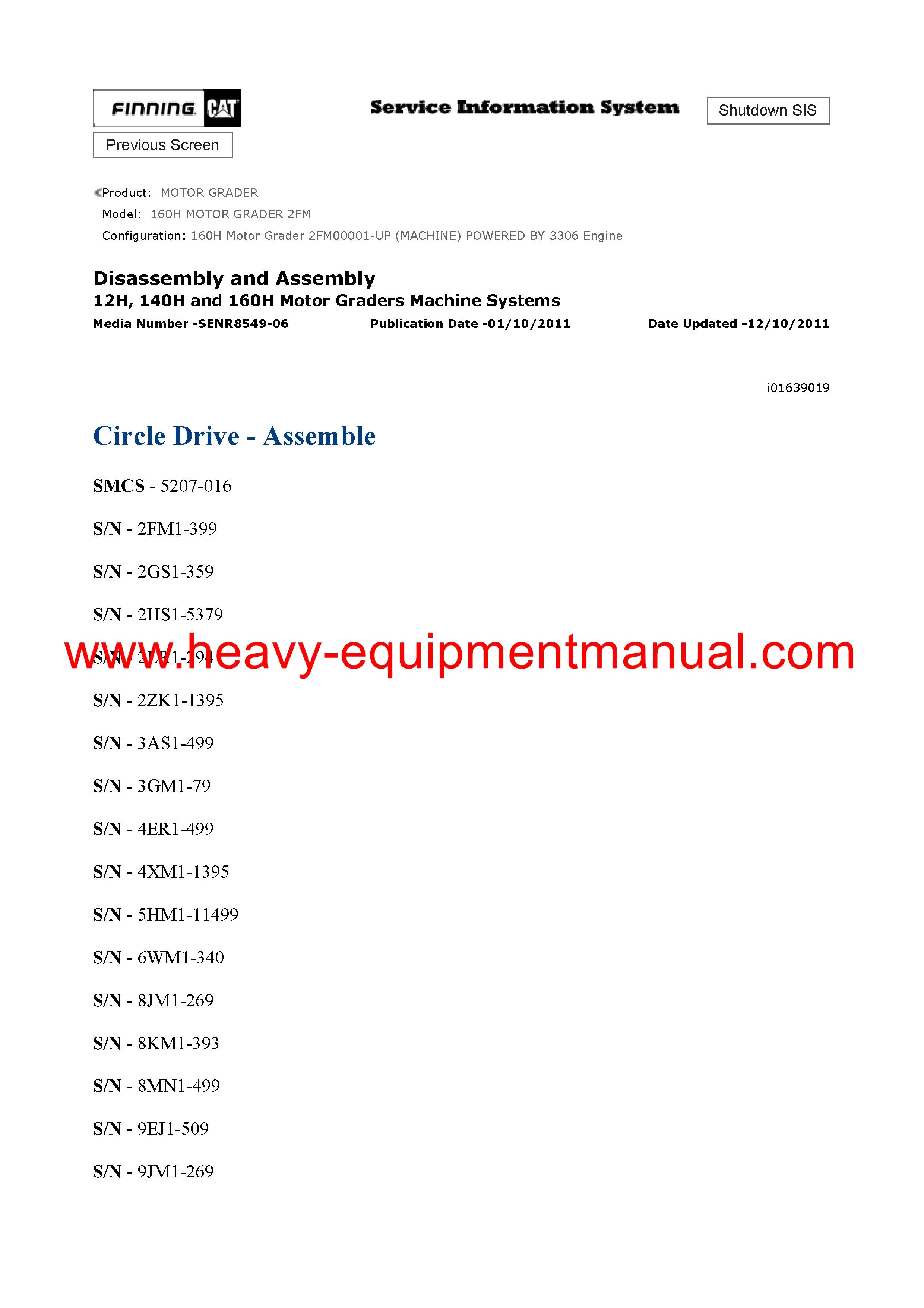 It is Complete Original Factory for Caterpillar 160H MOTOR GRADER. Covers all the service and repair information about Caterpillar 160H MOTOR GRADER. The information in this manual covers everything you need to know when you want to service and repair Caterpillar 160H MOTOR GRADER.