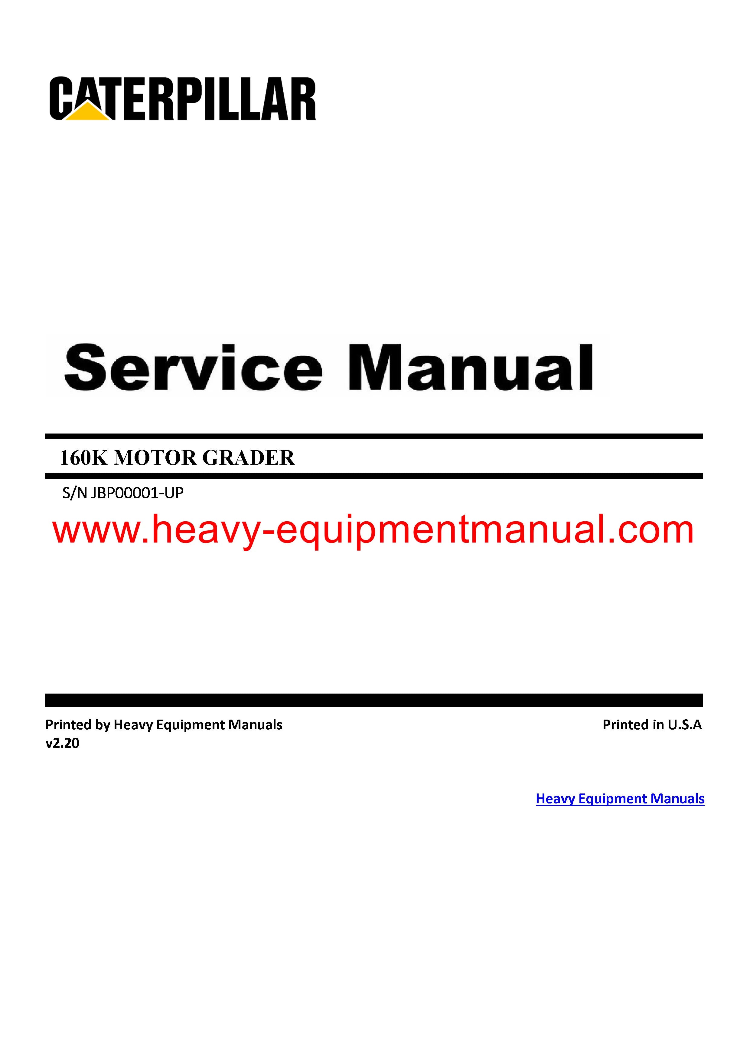 It is Complete Original Factory for Caterpillar 160K MOTOR GRADER. Covers all the service and repair information about Caterpillar 160K MOTOR GRADER. The information in this manual covers everything you need to know when you want to service and repair Caterpillar 160K MOTOR GRADER.