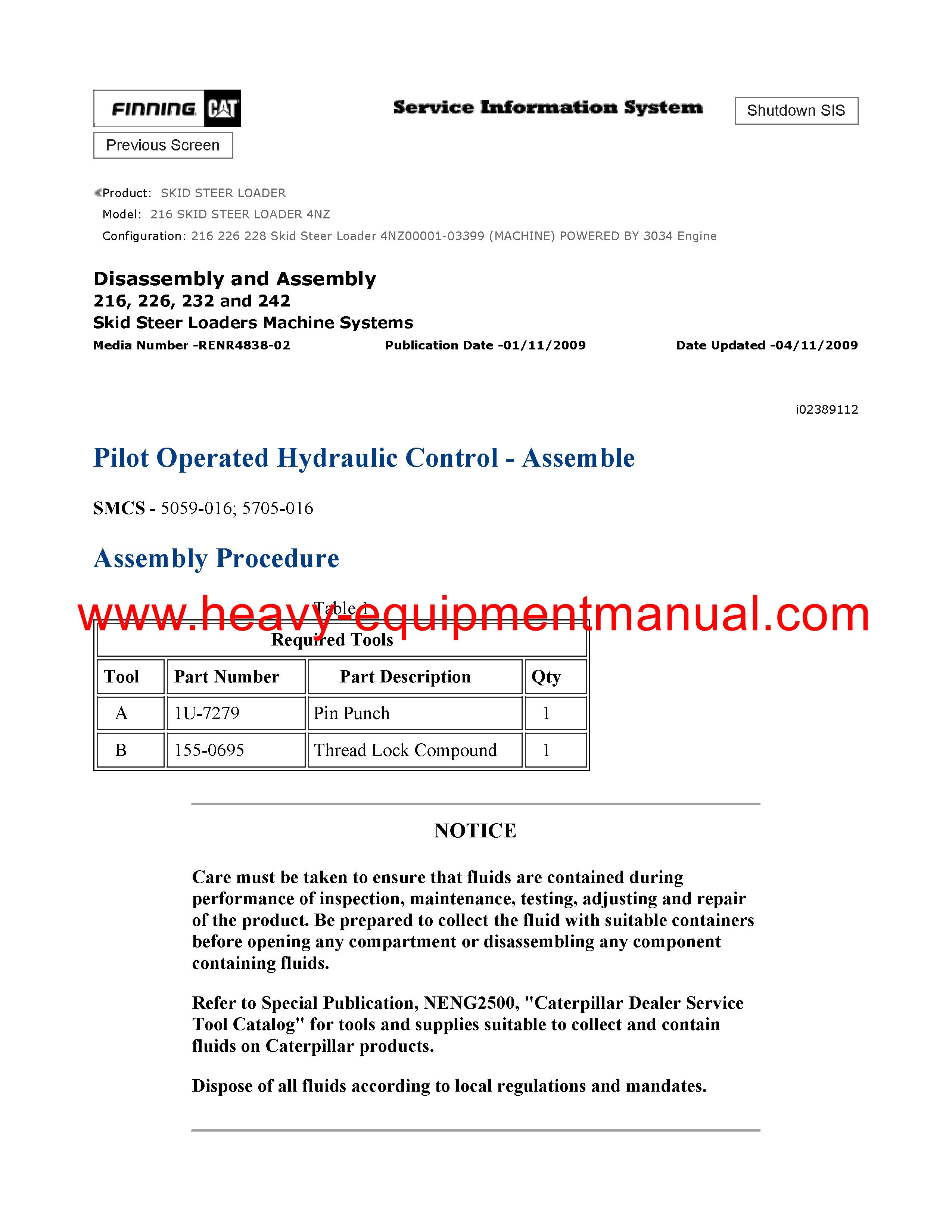 It is Complete Original Factory for Caterpillar 216 SKID STEER LOADER. Covers all the service and repair information about Caterpillar 216 SKID STEER LOADER. The information in this manual covers everything you need to know when you want to service and repair Caterpillar 216 SKID STEER LOADER.