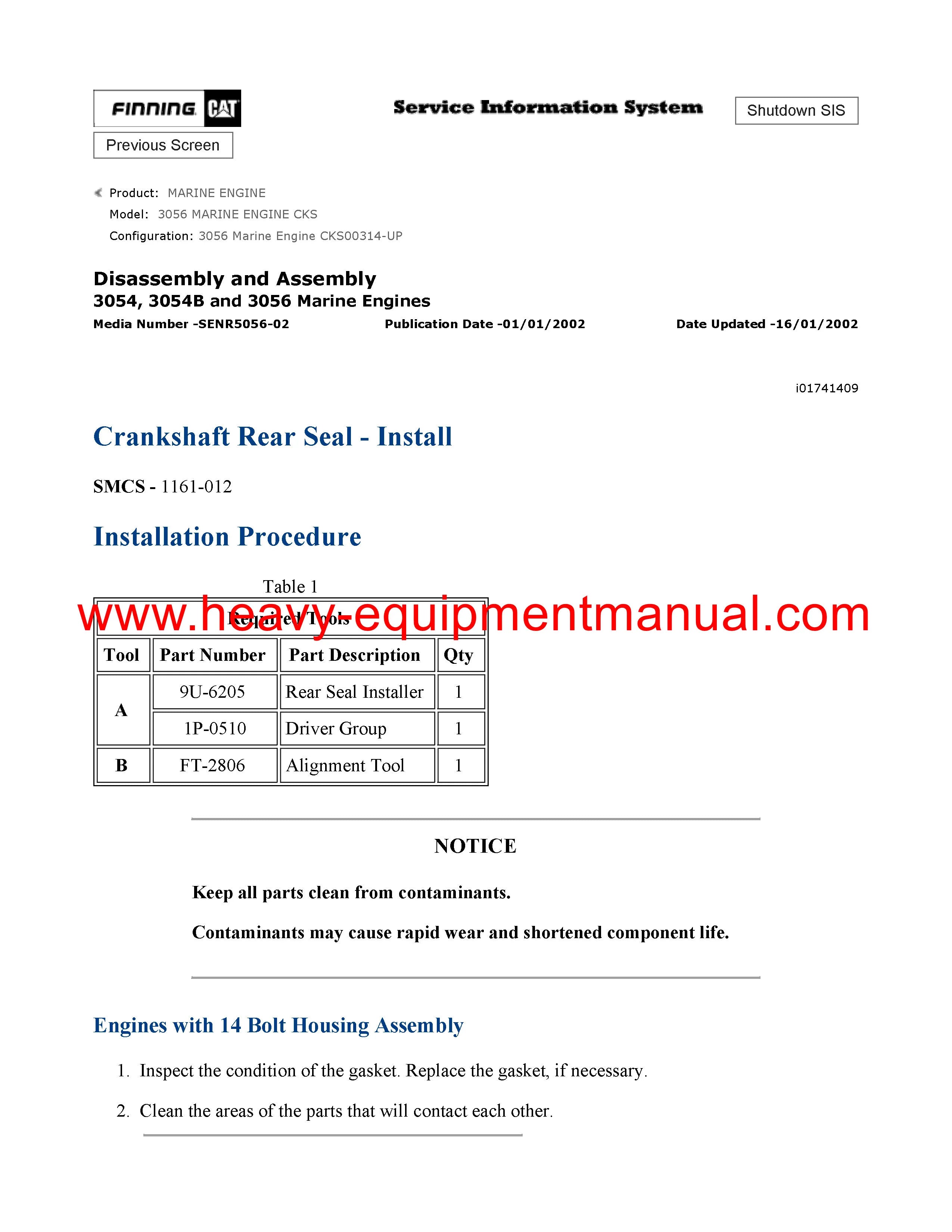 It is Complete Original Factory for Caterpillar 3056 MARINE ENGINE. Covers all the service and repair information about Caterpillar 3056 MARINE ENGINE. The information in this manual covers everything you need to know when you want to service and repair Caterpillar 3056 MARINE ENGINE.