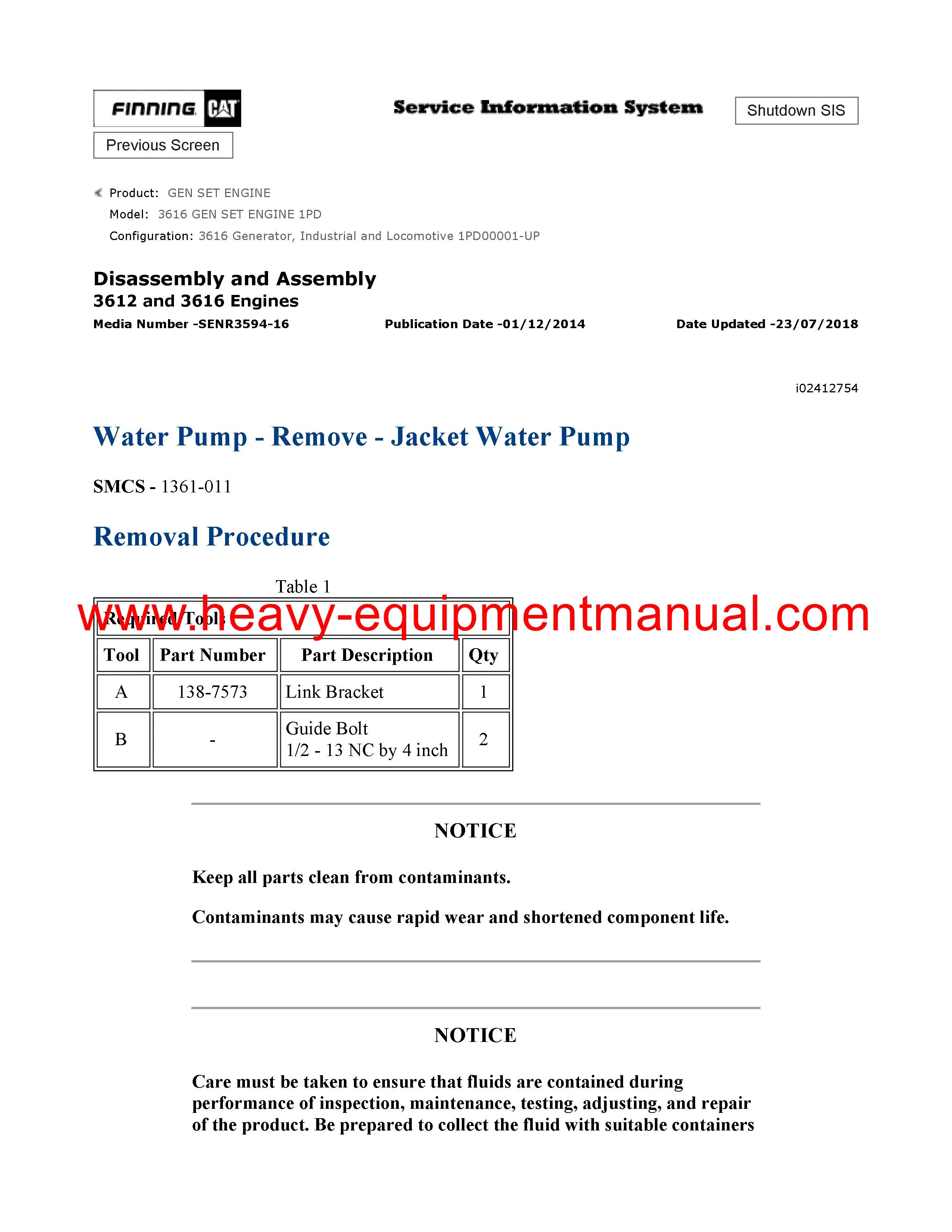 It is Complete Original Factory for Caterpillar 3616 GEN SET ENGINE. Covers all the service and repair information about Caterpillar 3616 GEN SET ENGINE. The information in this manual covers everything you need to know when you want to service and repair Caterpillar 3616 GEN SET ENGINE.