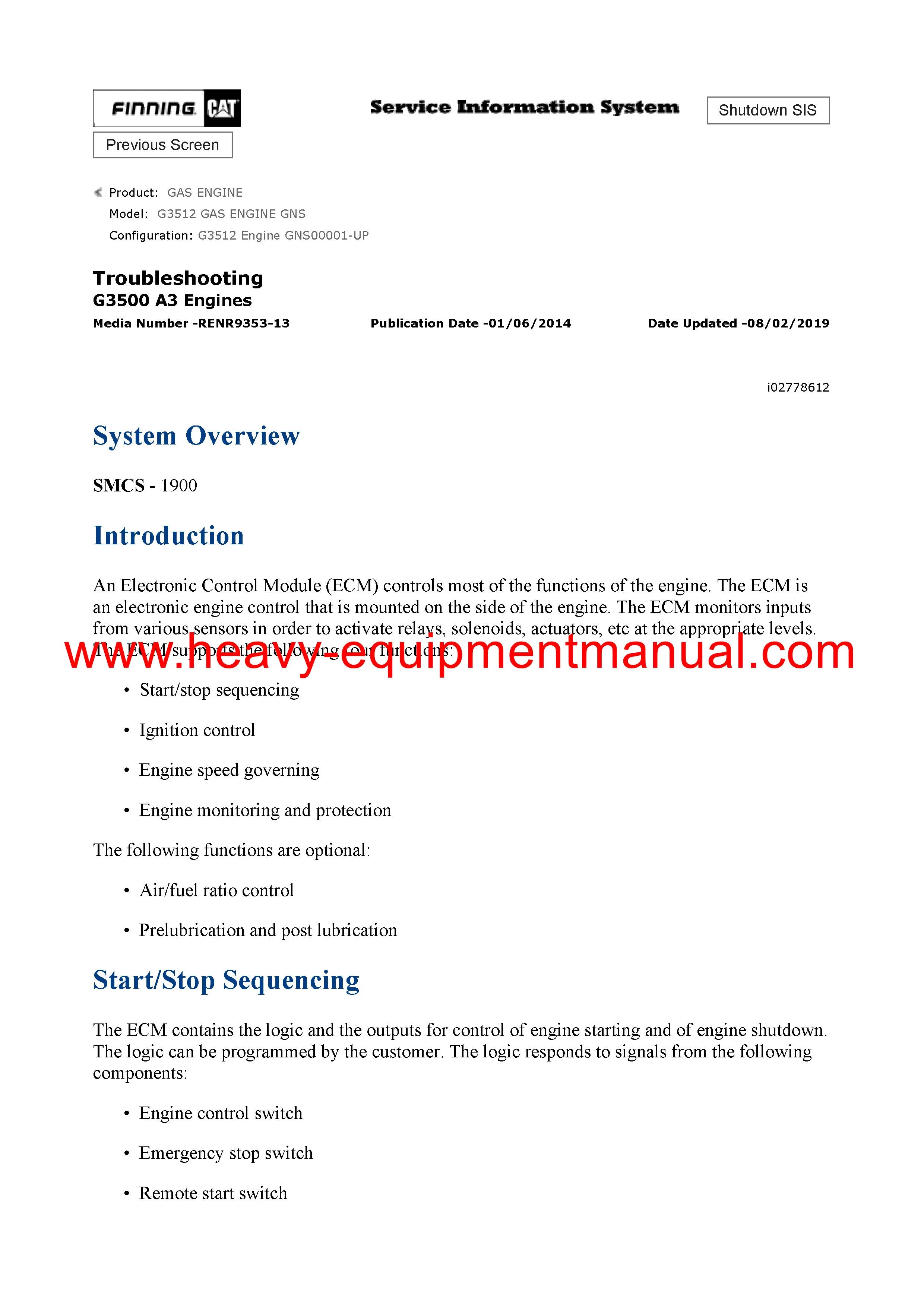 It is Complete Original Factory for Caterpillar G3512 GAS ENGINE. Covers all the service and repair information about Caterpillar G3512 GAS ENGINE. The information in this manual covers everything you need to know when you want to service and repair Caterpillar G3512 GAS ENGINE.
