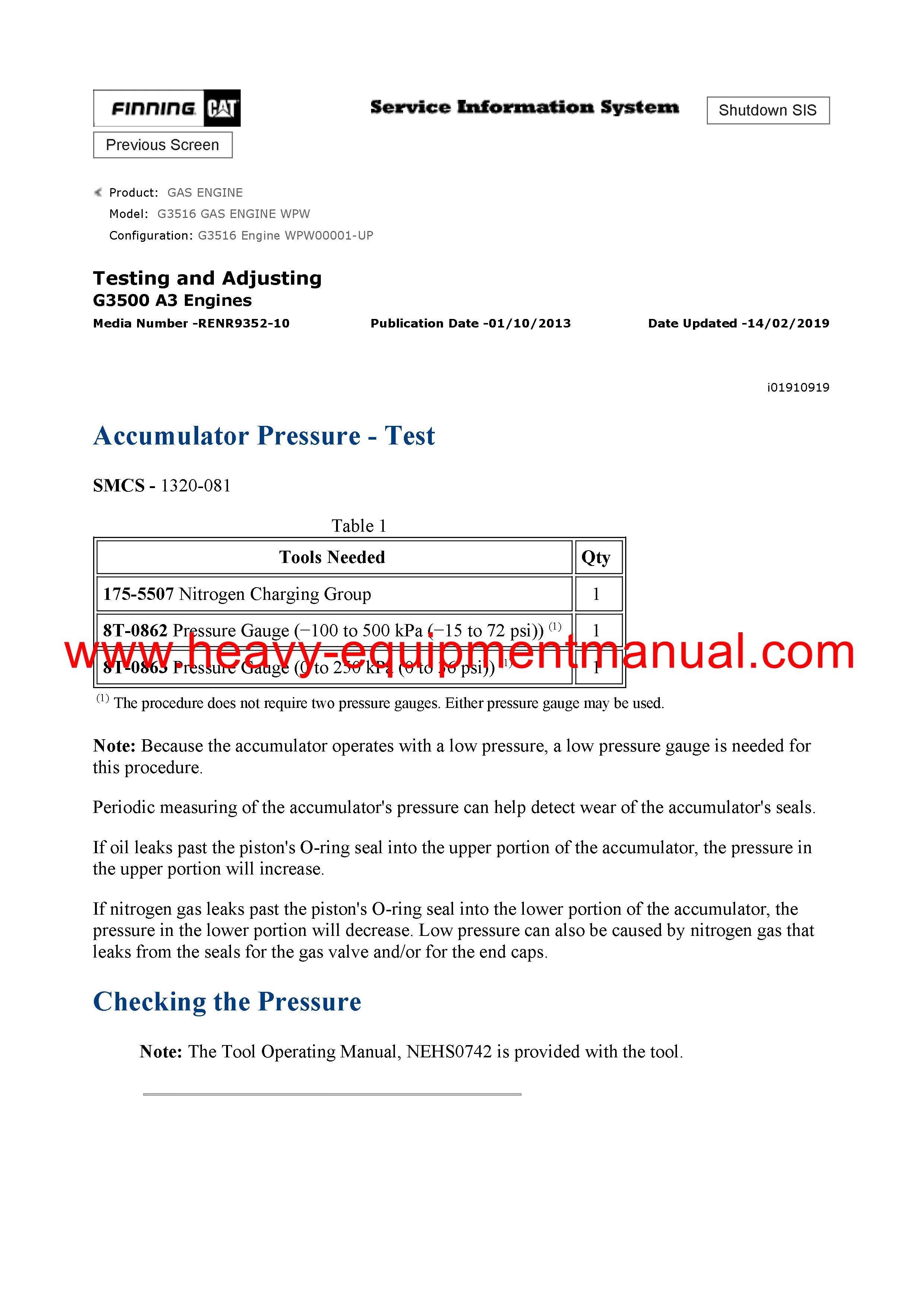 It is Complete Original Factory for Caterpillar G3516 GAS ENGINE. Covers all the service and repair information about Caterpillar G3516 GAS ENGINE. The information in this manual covers everything you need to know when you want to service and repair Caterpillar G3516 GAS ENGINE.