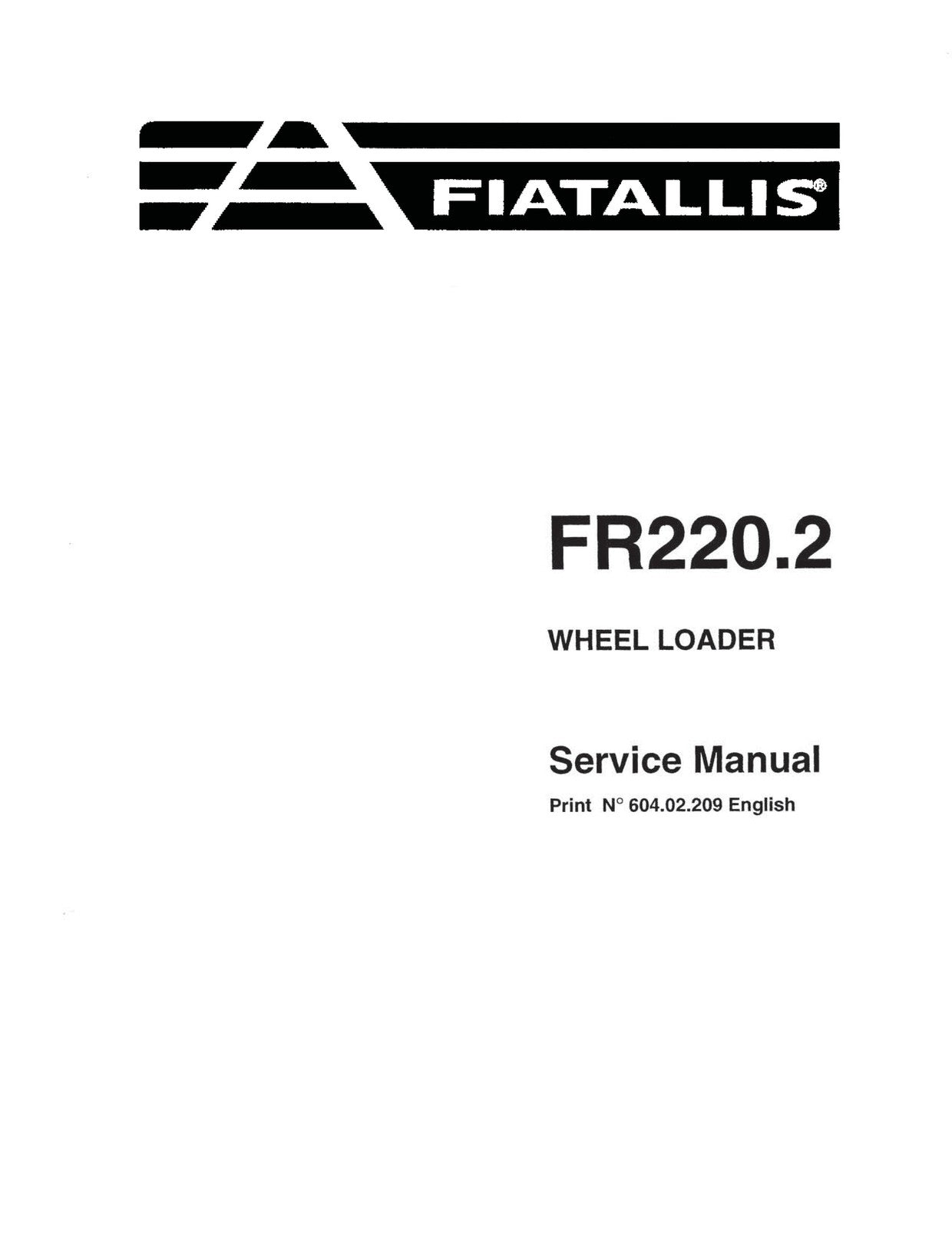 It is Complete Original Factory for New Holland Fiat-Allis FR220.2 Wheel Loader. Covers all the service and repair information about New Holland Fiat-Allis FR220.2 Wheel Loader. The information in this manual covers everything you need to know when you want to service and repair New Holland Fiat-Allis FR220.2 Wheel Loader.