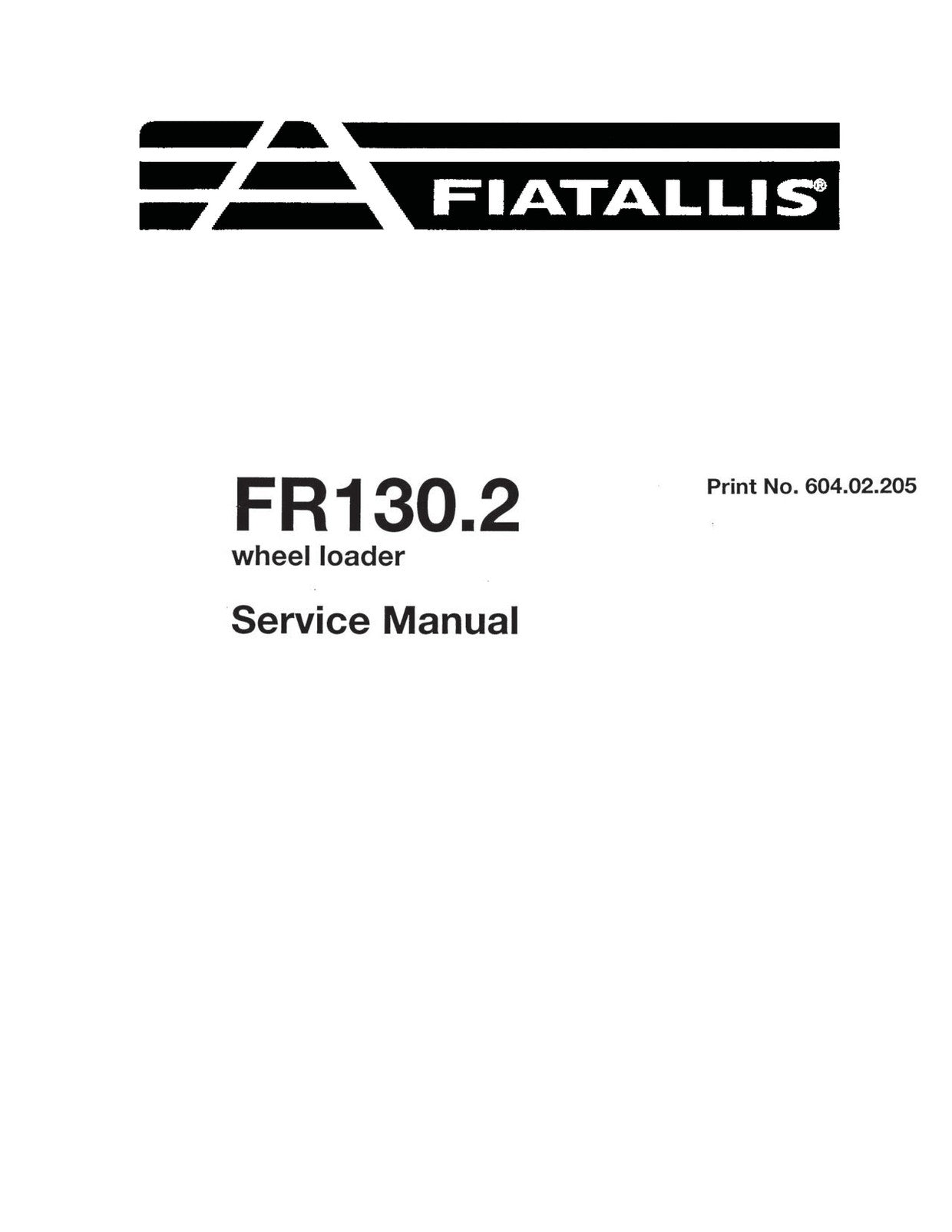 It is Complete Original Factory for New Holland Fiatallis FR130.2 Wheel Loader. Covers all the service and repair information about New Holland Fiatallis FR130.2 Wheel Loader. The information in this manual covers everything you need to know when you want to service and repair New Holland Fiatallis FR130.2 Wheel Loader.