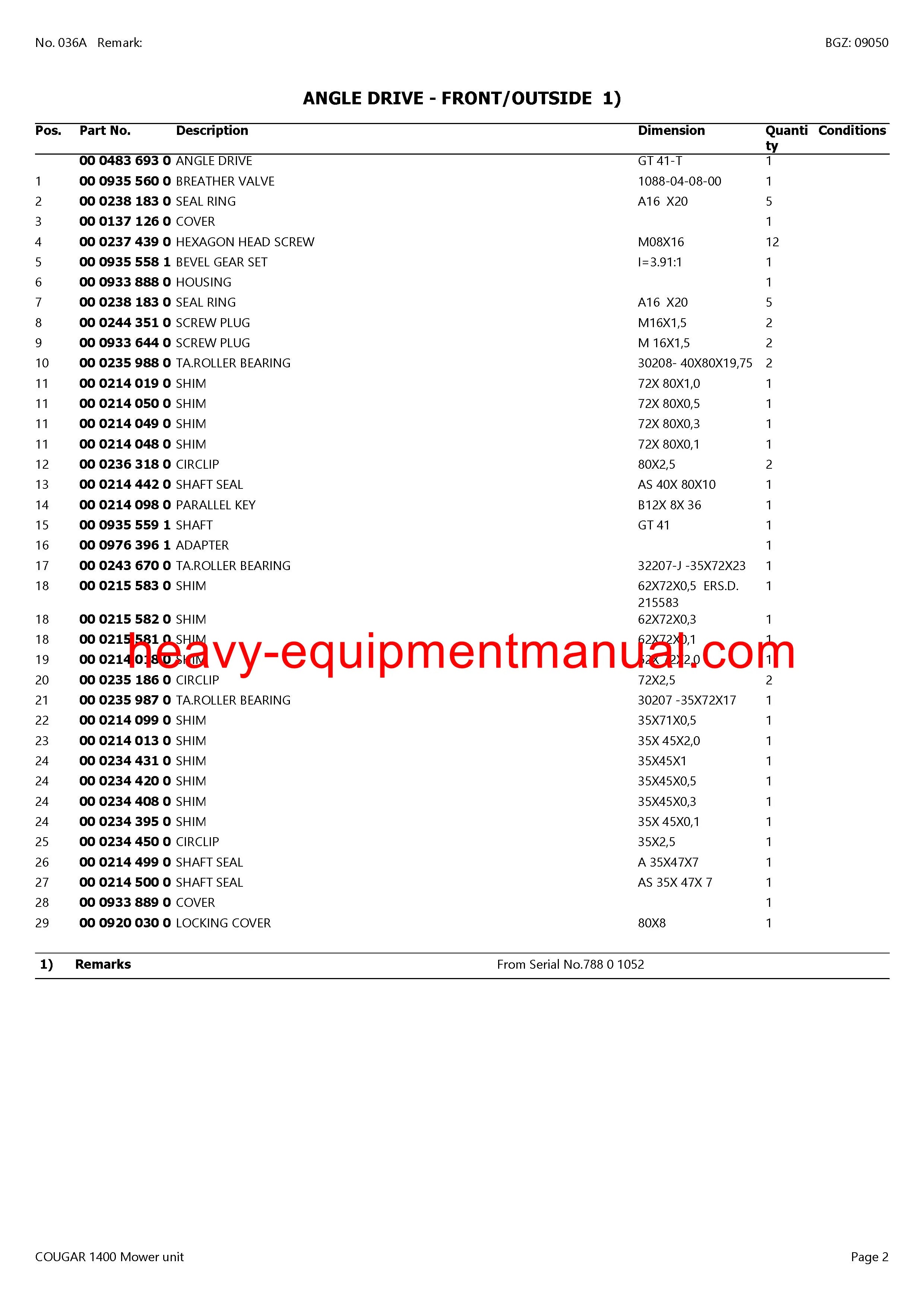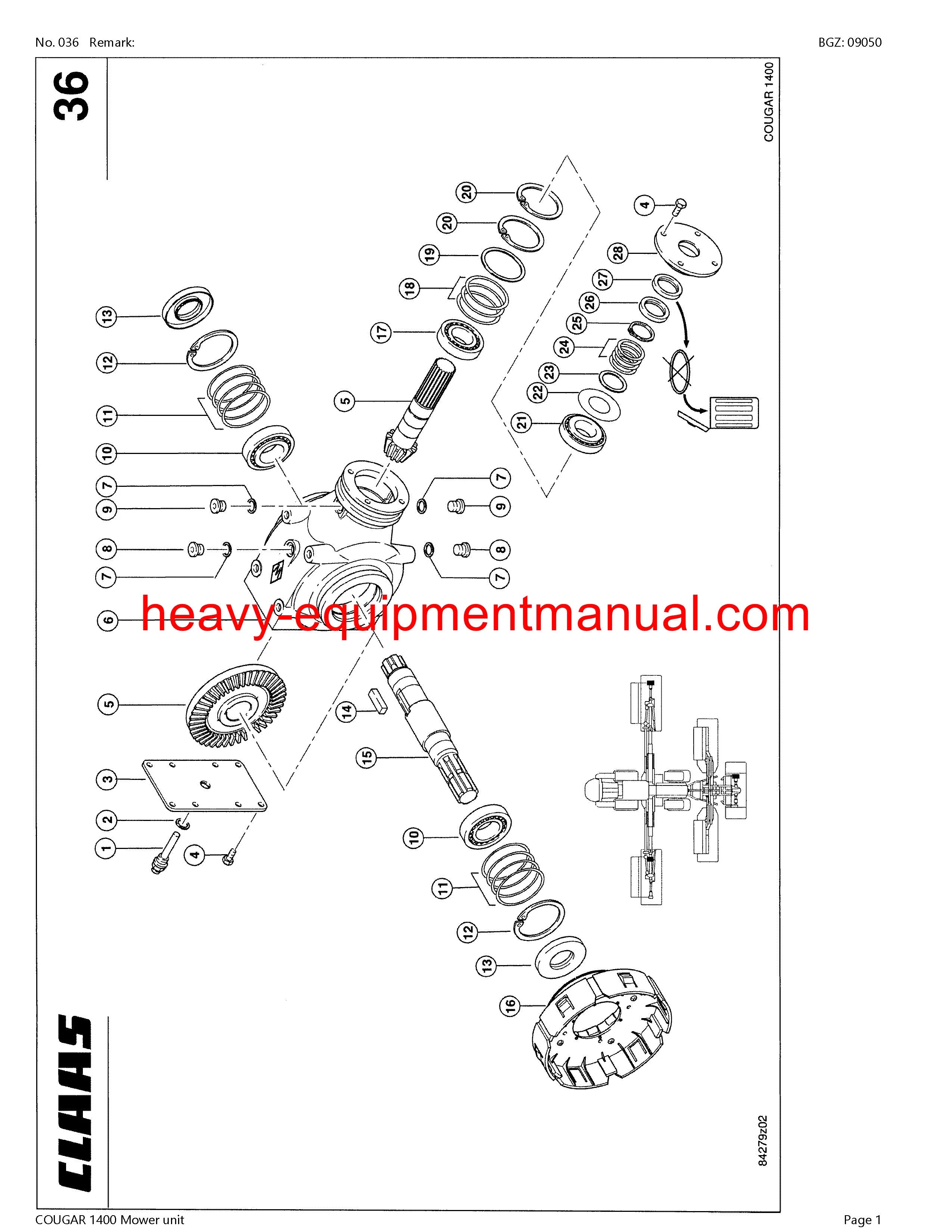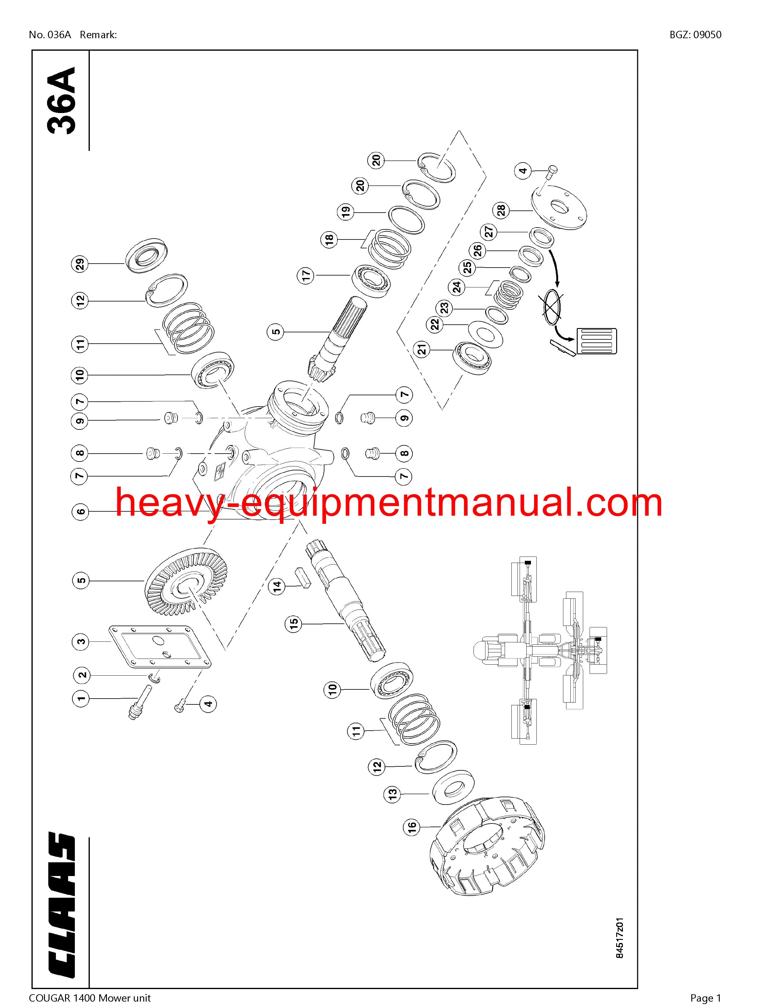 PDF Claas 1400 Cougar Mower Base Machine Parts Manual Download