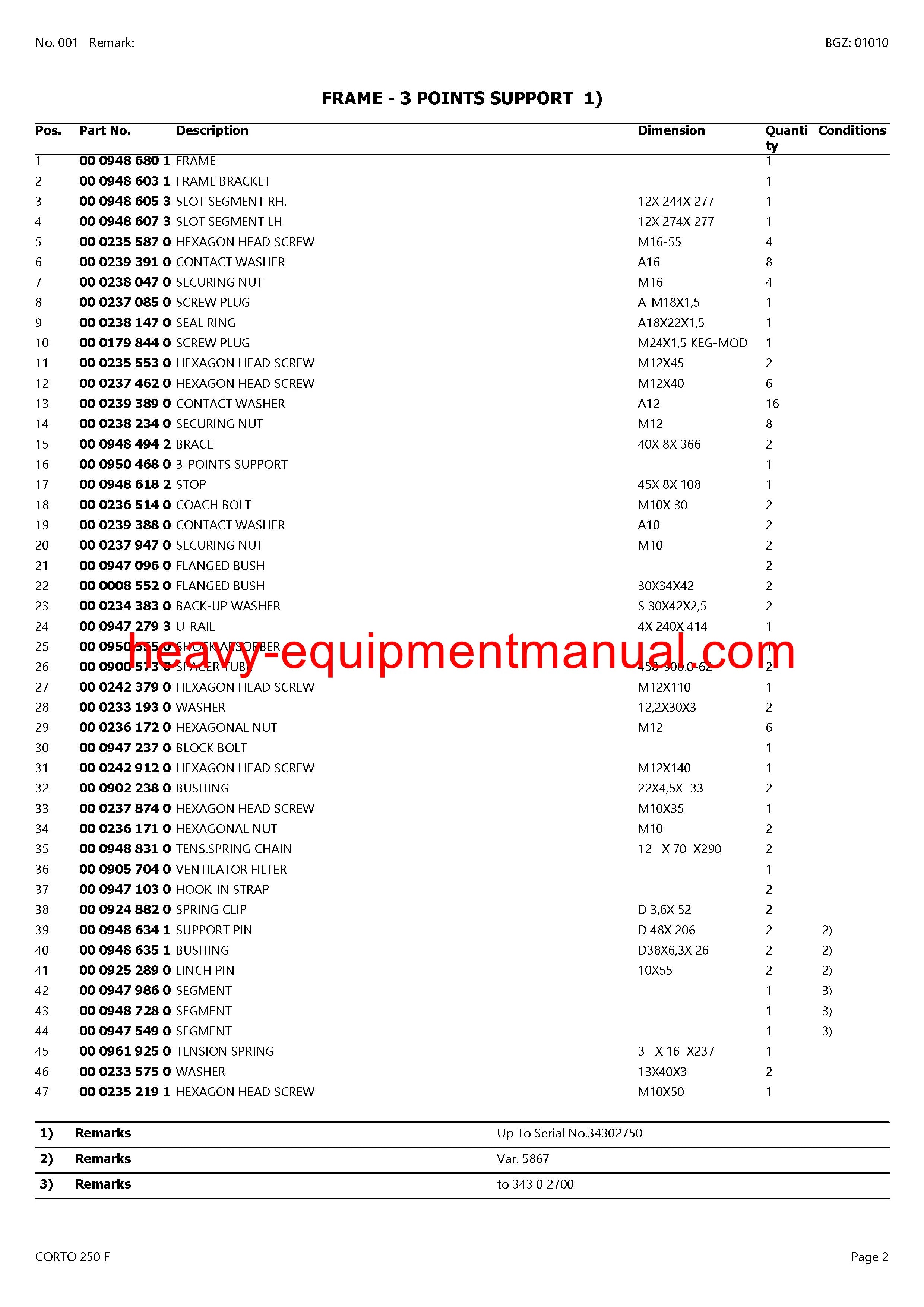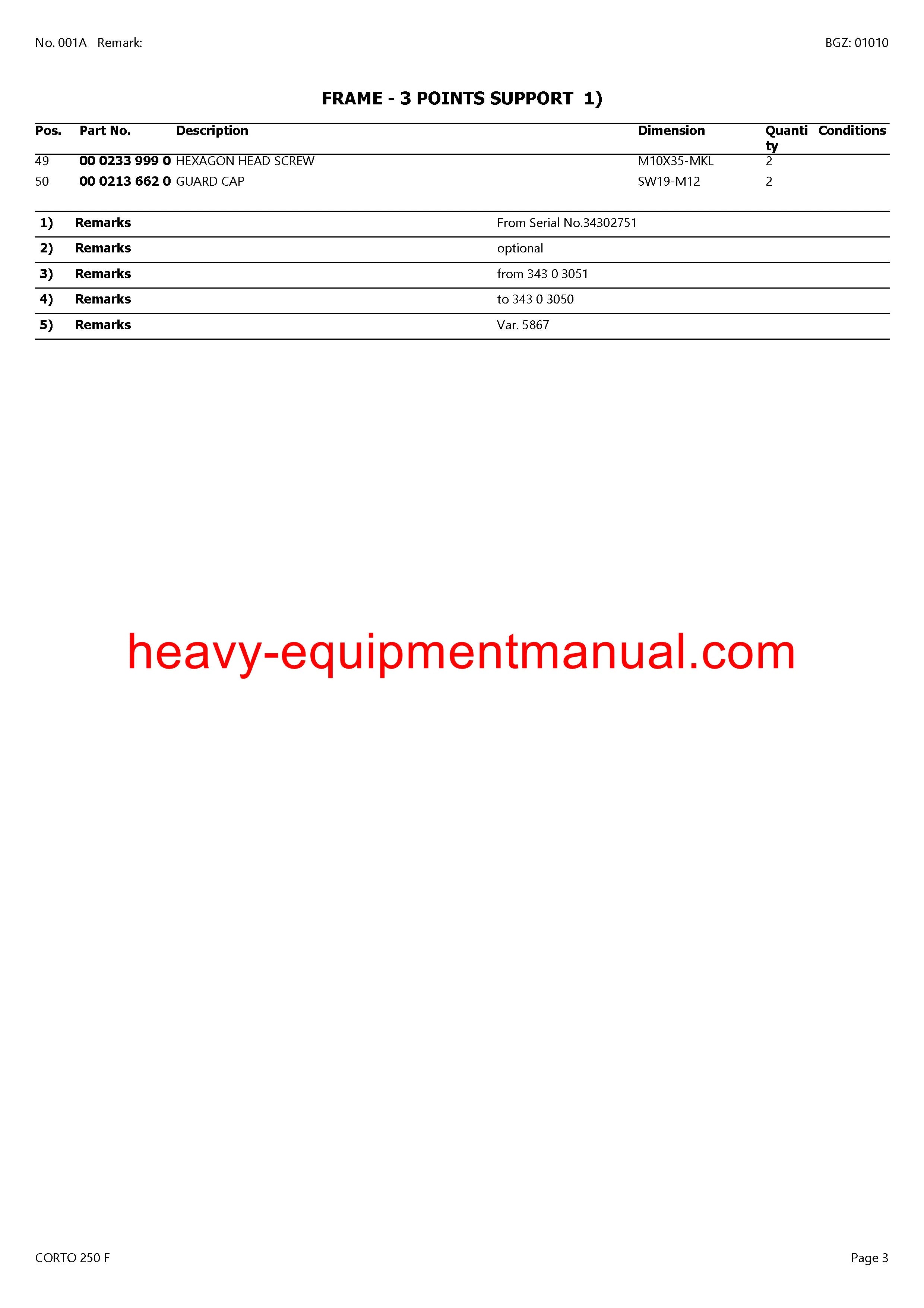 PDF Claas 250 F Corto Mower Parts Manual
