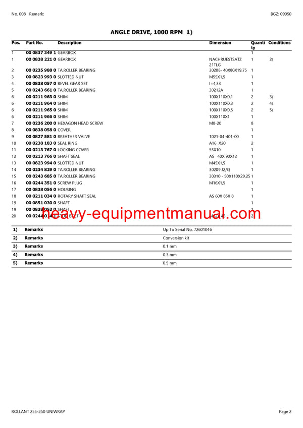 PDF Claas 255 - 250 Rollant Uniwrap Baler Parts Manual
