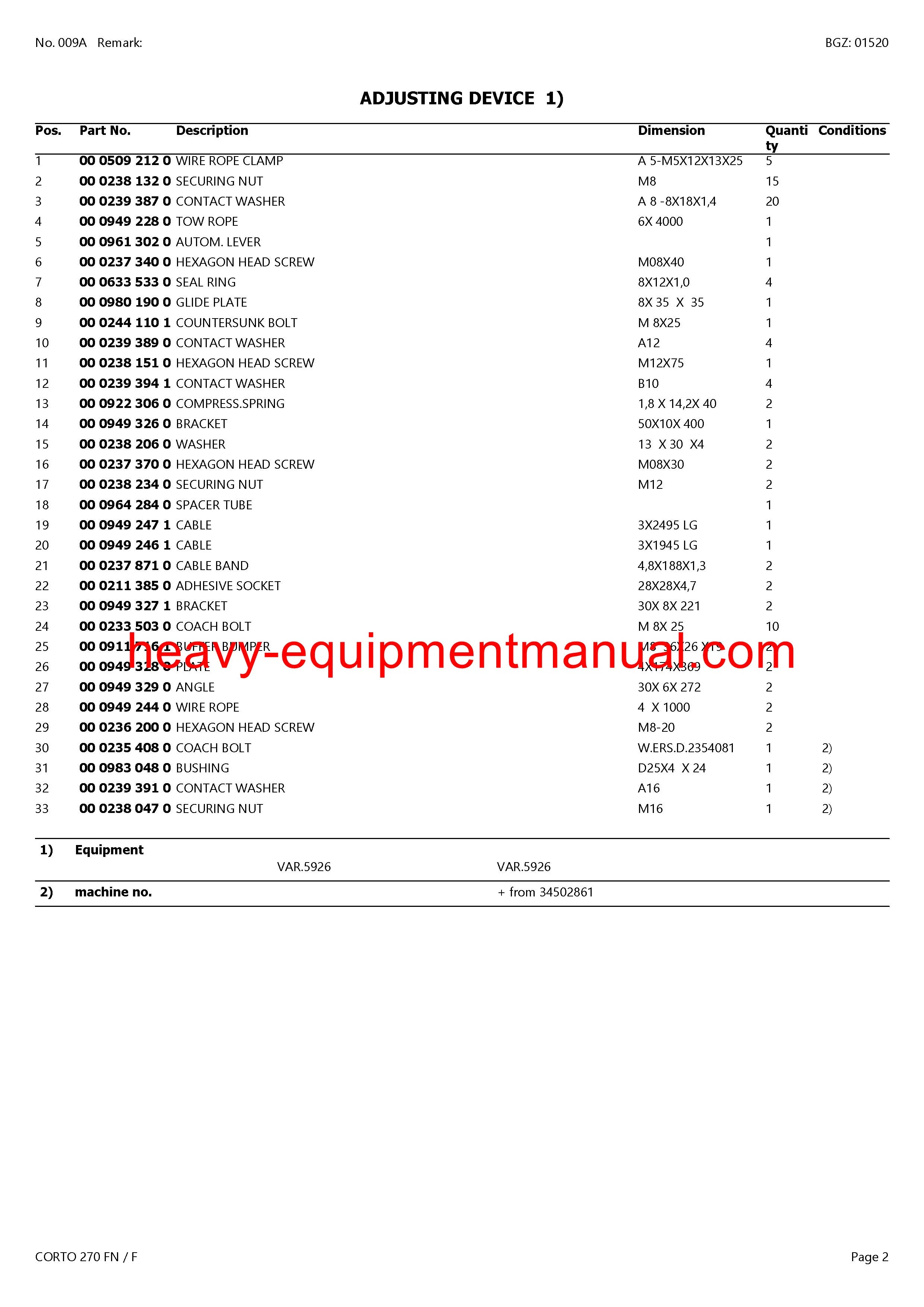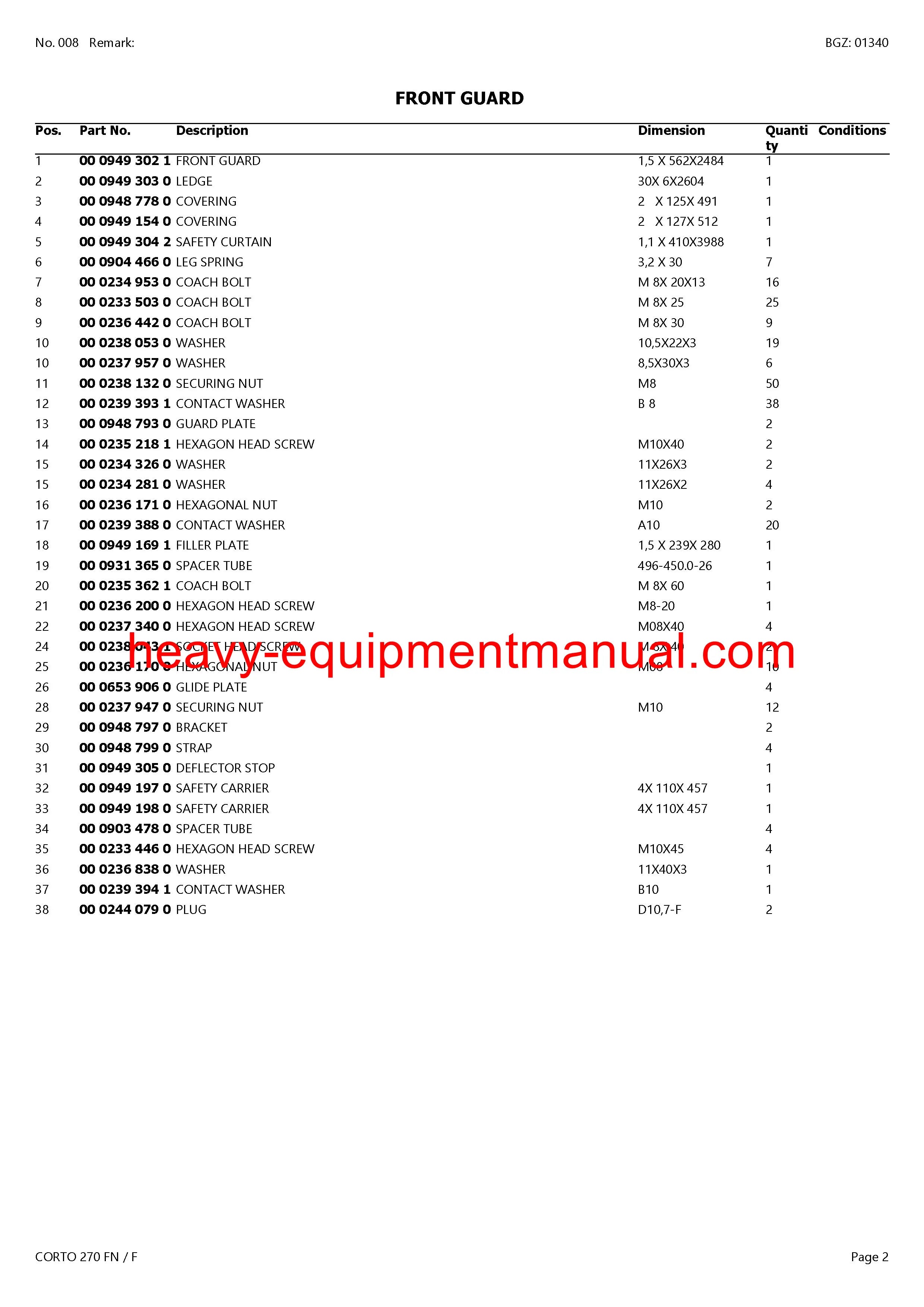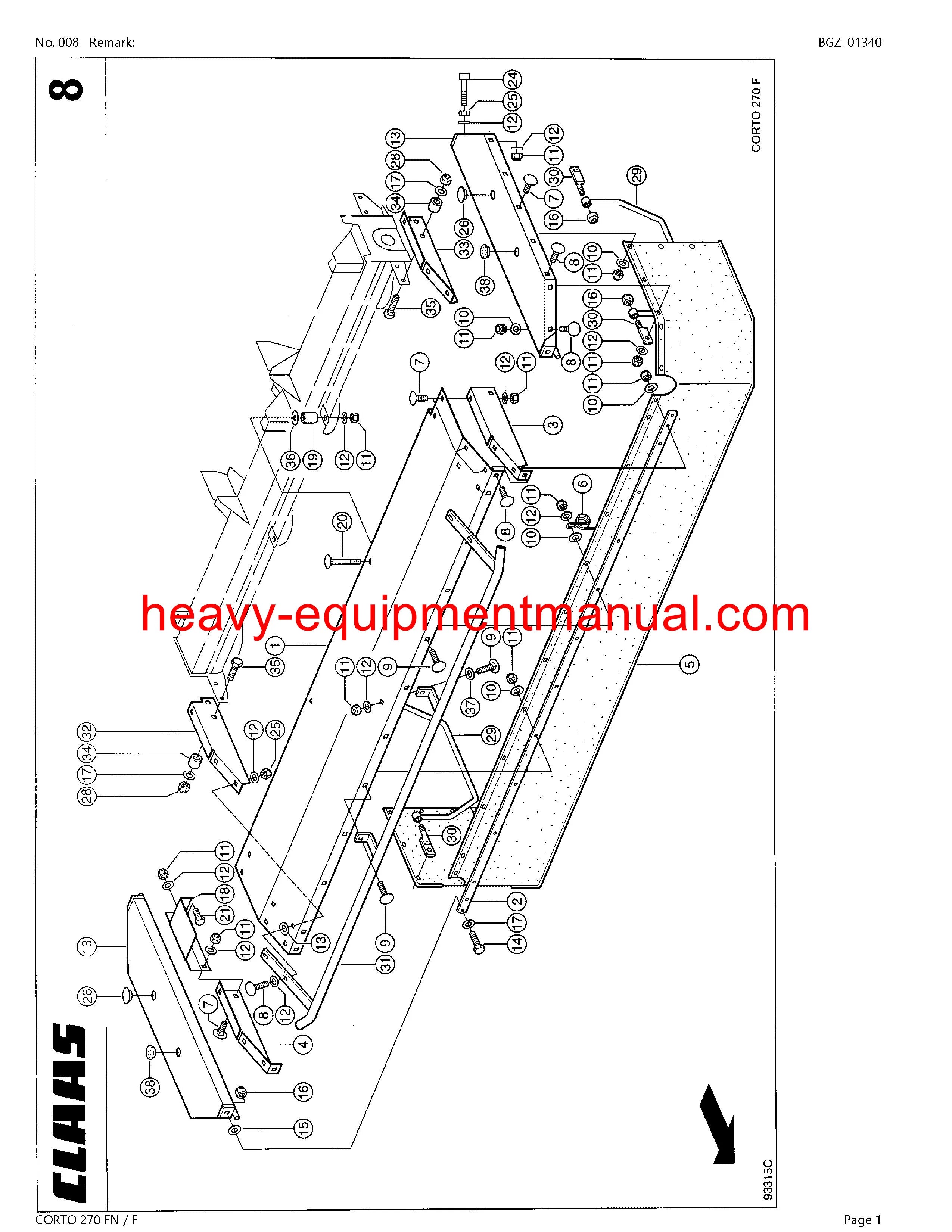 PDF Claas 270 FN F Corto Mower Parts Manual