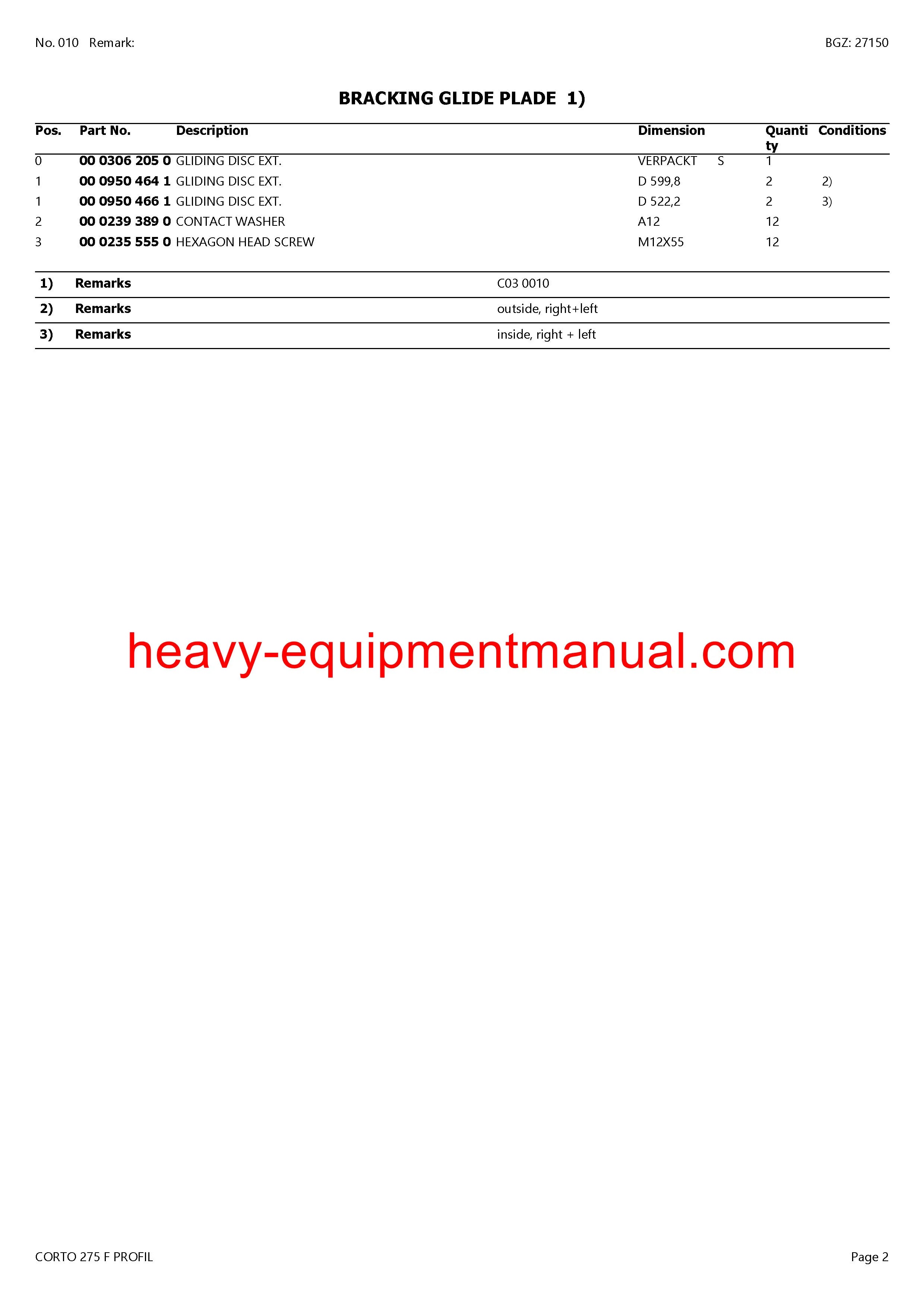 PDF Claas 275 F Corto Profil Mower Parts Manual Download