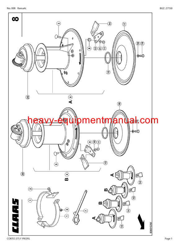 PDF Claas 275 F Corto Profil Mower Parts Manual