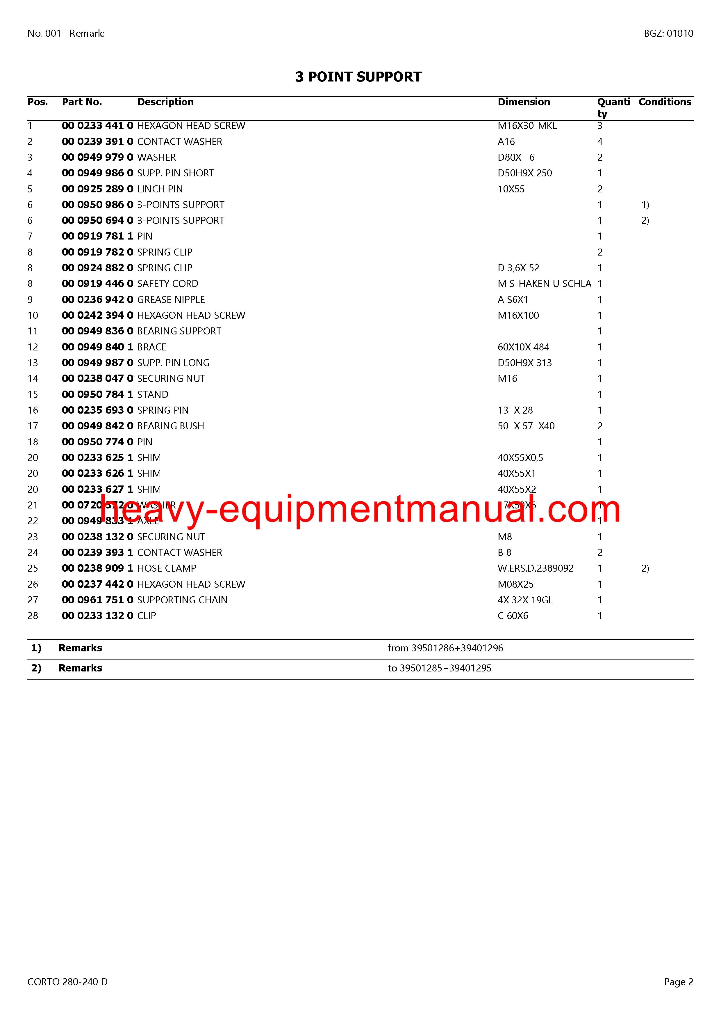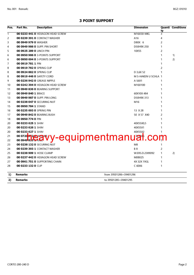 PDF Claas 280 - 240 D Corto Mower Parts Manual Download