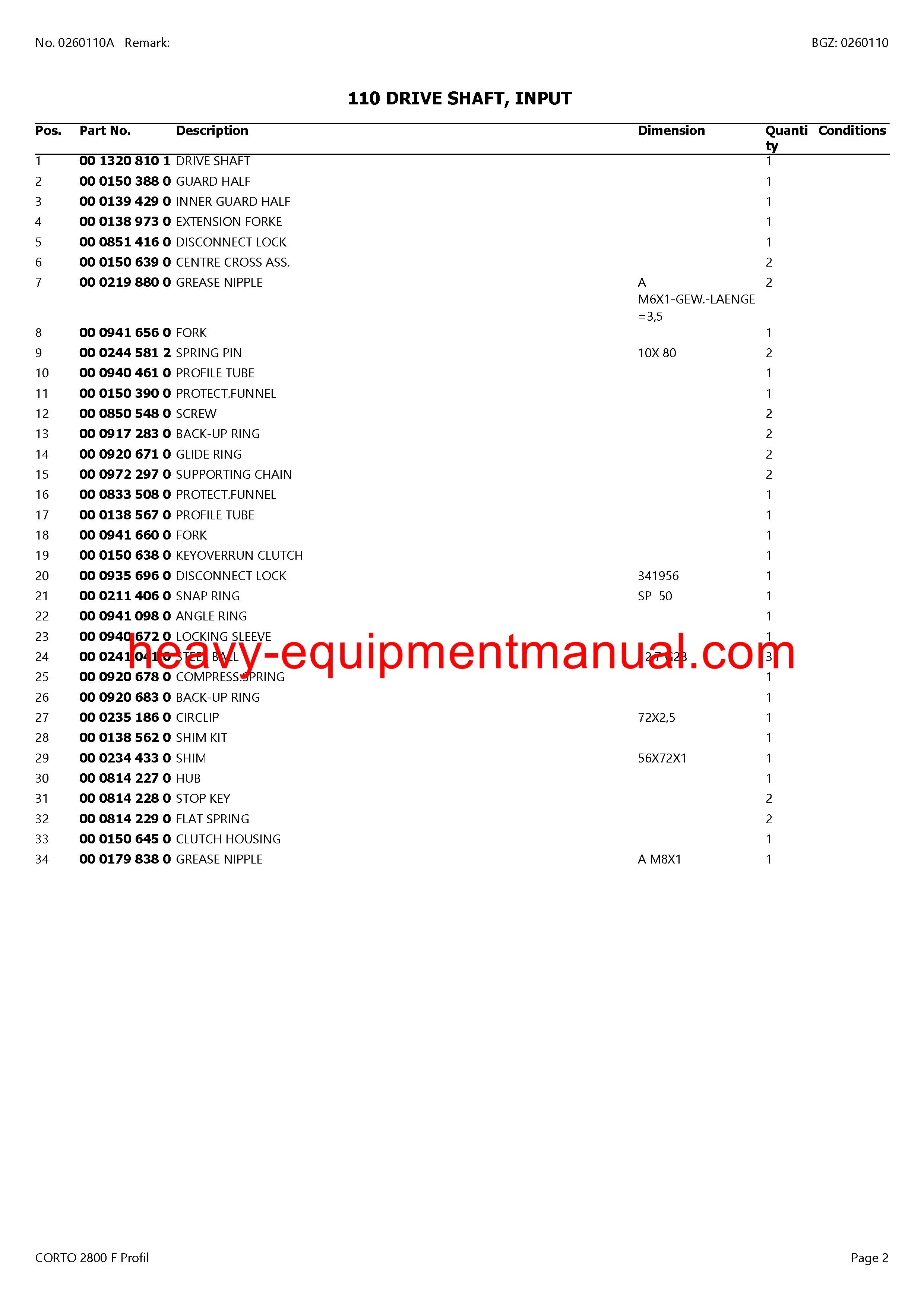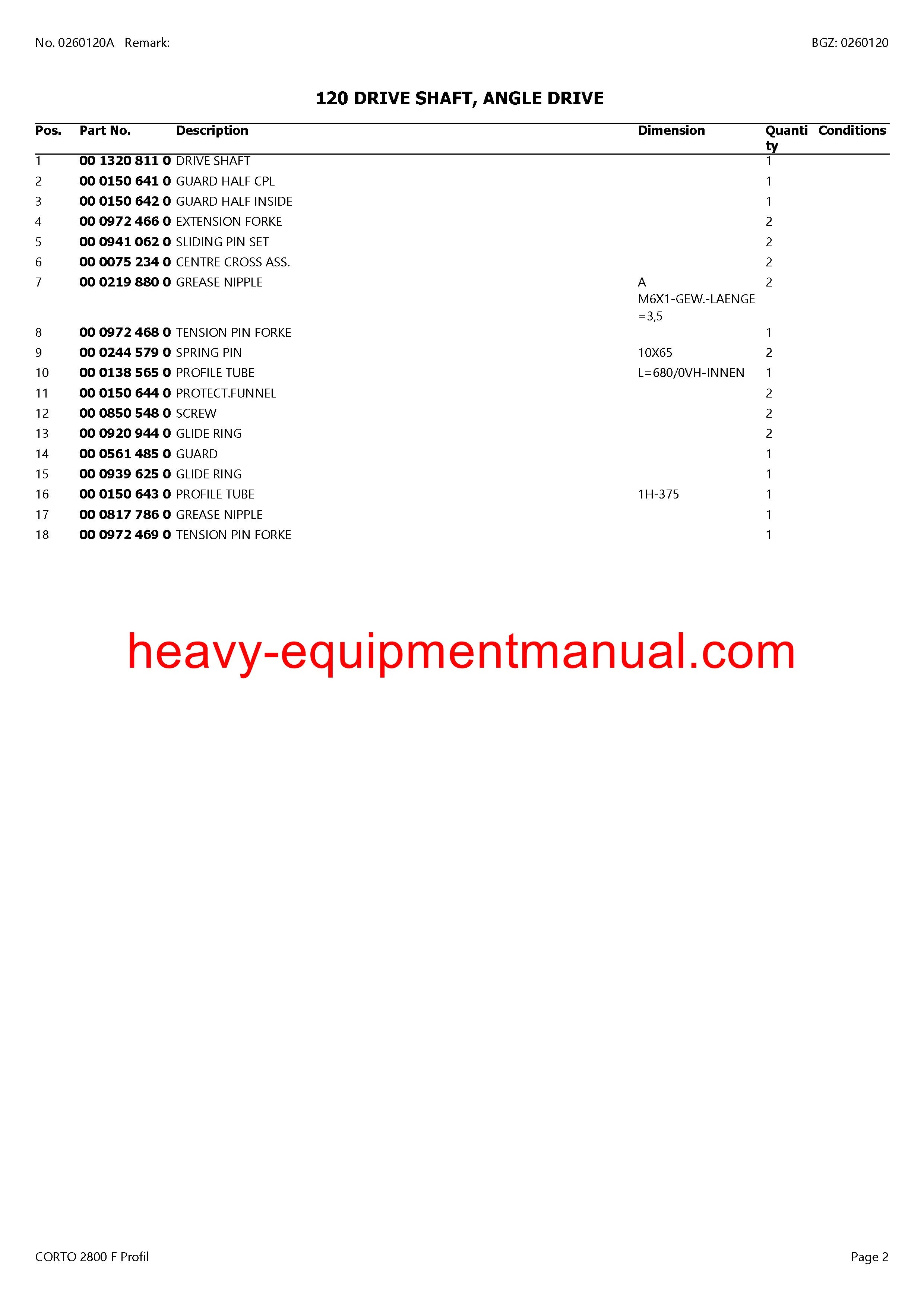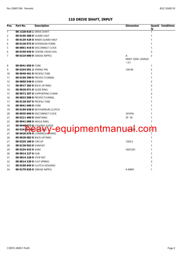 PDF Claas 2800 F Corto Profil Mower Parts Manual Download