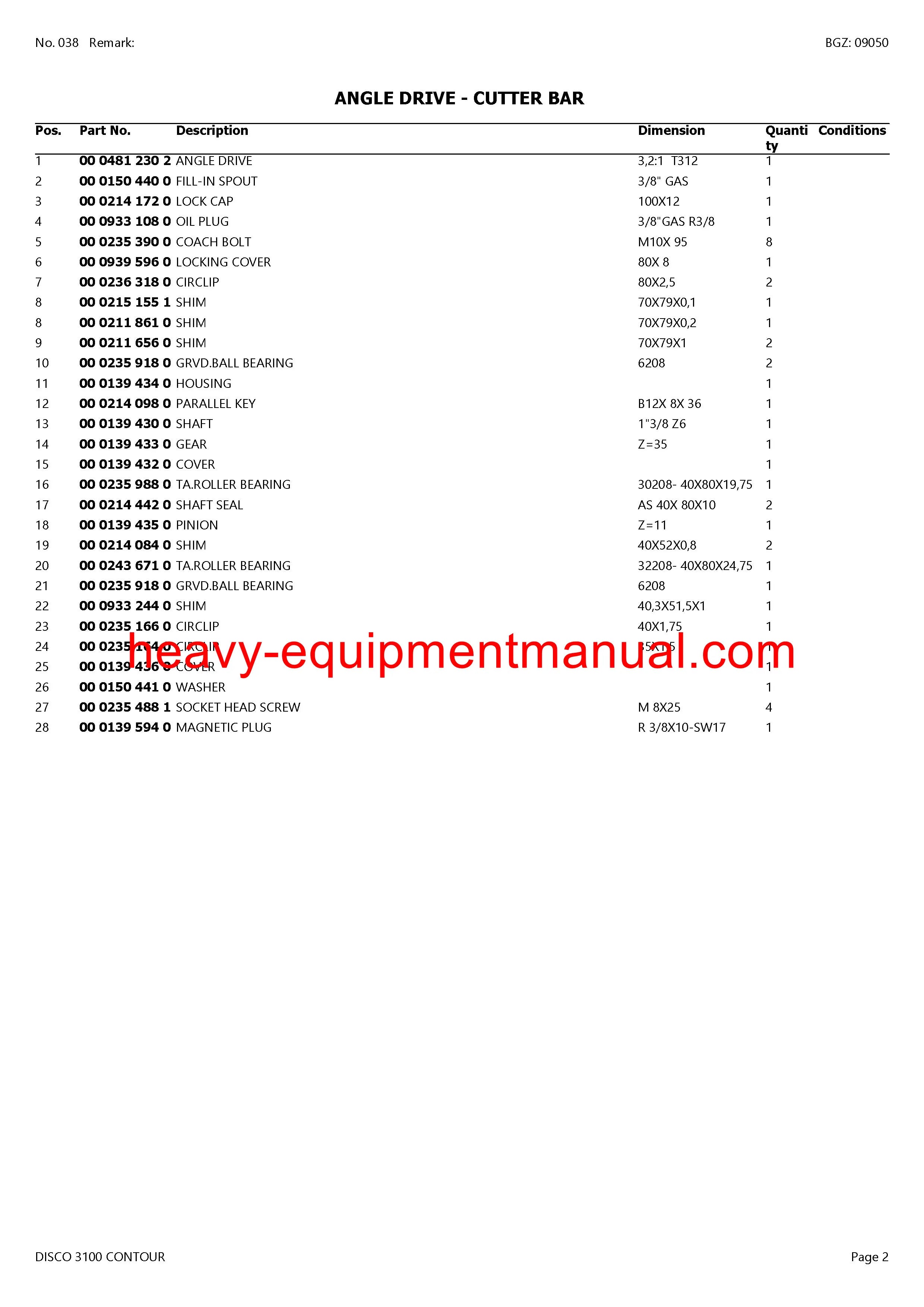 PDF Claas 3100 Disco Contour Mower Parts Manual