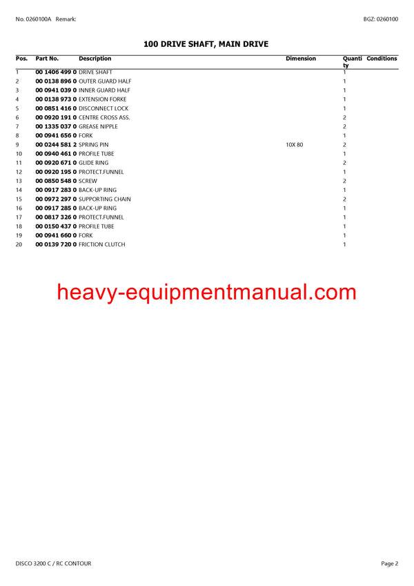 PDF Claas 3200 C RC Disco Contour Mower Parts Manual