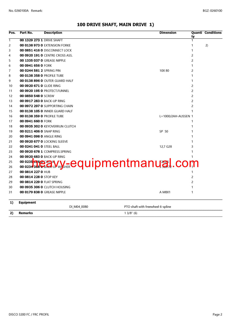 PDF Claas 3200 FC / FRC Profil Disco Mower Parts Manual