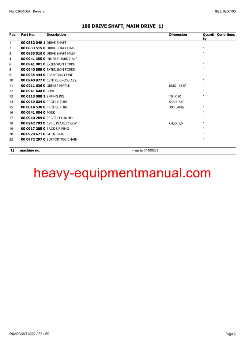PDF Claas 3200/RF/RC Quadrant Baler Part Manual